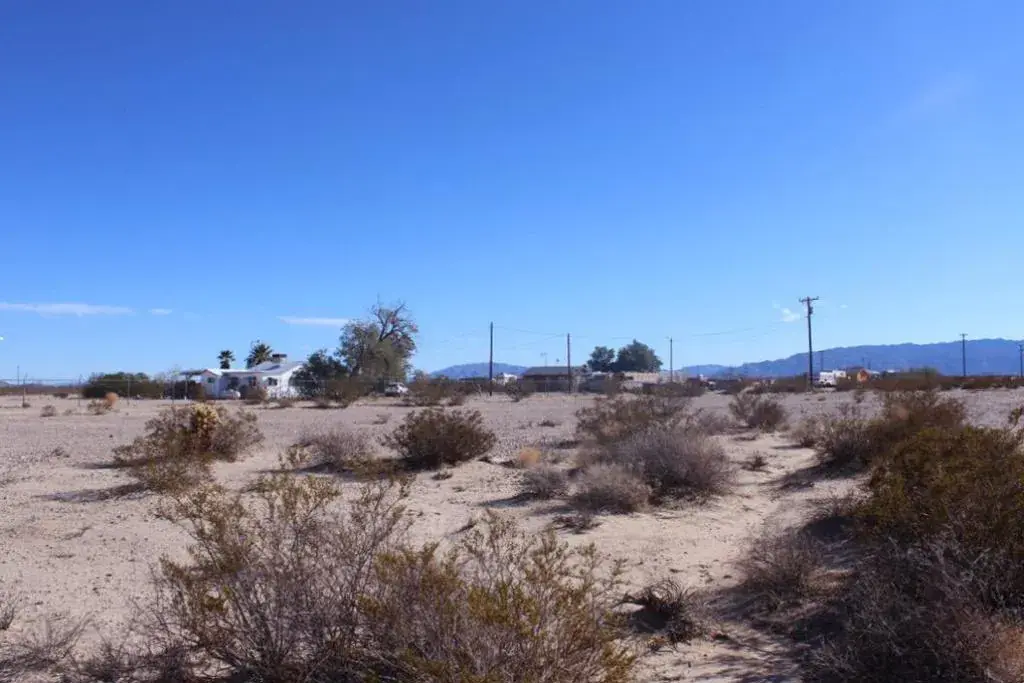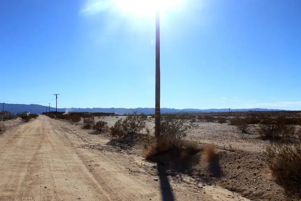 BLUEGRASS AVE., 29 PALMS $19,000 – Beautiful 2.5 acre parcel located on Bluegrass Avenue in 29 Palms. This property features water and electric in the street, a fire hydrant across the street, and nice ranch homes nearby. Perfect for those looking to have horses, dogs, and nice neighbors, with a date farm nearby providing a stunning backdrop. The land is ready for building, with flat terrain and utilities already in place. Partially fenced on one side, with dimensions of 332 X 329 = 108900 Sq Ft = 2.5 Acres. Owner financing available with 20% down ($3,800.00) and a 1st Trust Deed of $15,200.00 @ 7% interest amortized over 5 years, payable $300.98 per month + $15.00 loan service fee. APN#0633-201-41-0000. DIRECTIONS: From Hwy 62 go north on Lear Avenue then right on Pole Line Road then left or north on Bermuda Ave. then right on Winters Road then left on Bluegrass Ave. (aka TuPelo Trail) lot on left side on corner of Tortoise Ave. Look for sign.