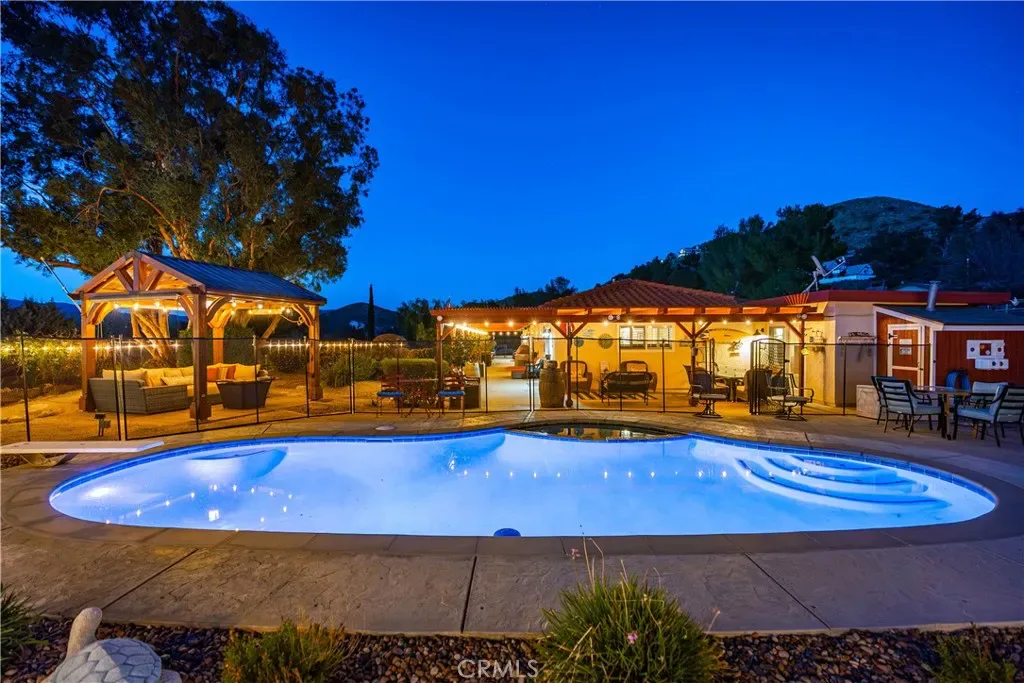 Gorgeous Pool Home – Prime Location – Many Amenities!! Welcome to this 4-bedroom Pool home in the sought-out neighborhood of the Country Way Estates – quiet, end of cul-de-sac location on 2½ acres, ideal for horses, an ADU or RVs. Great layout with a blend of designated and open space: entertain in the formal dining and living rooms, host gatherings in the substantial kitchen or cozy-up in front of the fire in the family room. The elegant kitchen is the heart of the home boasting granite counters, cherry cabinets with pull out drawers and stainless appliances. All bedrooms are spacious, but the primary bedroom is a private retreat, with an updated bathroom, large bonus room, which could be a fifth bedroom, and access to the backyard. Upgraded features include new plumbing, dual pane windows with shutters, travertine floors and newer carpet, ceiling fans and a whole-house fan. The property is thoughtfully designed. The main level has a lush lawn, fenced pool/spa, covered patio for barbeques, and pergola with leisure space. The park-like yard has drought tolerant plants, perfect for gardening, yoga and meditating. The second level is fully equipped for the equestrian, with corrals, round pen, pasture and tack shed. Toy enthusiasts will appreciate the large driveway, attached 3-car garage and additional gated RV parking. The property is fully fenced with an automated security gate in the driveway. This home is a must-see, close to schools, shopping and restaurants, with county water, natural gas, paved roads and easy freeway access. Come home to luxury living in the country!