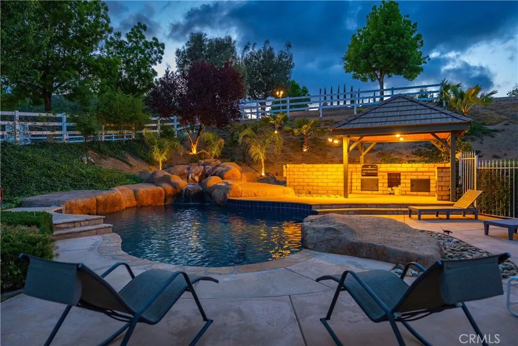 Breathtaking Home, 1.02 Acre, Luxury Living in Acton, CA! Prepare to be wowed by this stunning, turnkey 4 Bed 3 Bath home with incredible amenities, in one of Acton’s most desirable communities. The impeccable upkeep and dazzling curb appeal is accentuated by beautiful brickwork & 4 car attached garage w/exquisite new door, side-mounted openers, and a Level 2 (50-amp) EV charger. Now, the marriage of Luxury and Acton Country Life begins. Interior upgrades include fresh paint, updated flooring, remodeled bathrooms, and Milgard custom double-pane windows with lifetime warranty. With a formal entry boasting vaulted ceilings and sightlines to the amazing floorplan the charm of this home is apparent. To the left of the entryway, you will find the formal dining space and sitting area, with great natural light and direct access to the large kitchen. The Chef’s kitchen boasts granite countertops, recessed lighting, beautiful cabinetry, breakfast bar and sightlines to the family room. The family room features a gas fireplace w/stately brick hearth, wet bar. From here, the downstairs bed and bath, with convenient access to the backyard and pool. Upstairs, the massive primary suite offers custom closets, large bath w/dual vanities, walk-in shower and garden tub. Next, the large loft area that offers great versatility. Rounding out the upstairs are the remaining 2 bedrooms & bath. Now, the outdoor entertaining space of your dreams! The updated patio, meticulous landscaping and luxurious surroundings with a pathway to the custom pool and spa with a tranquil fountain feature and BBQ/kitchen area. This is destined to be the hangout spot for all of your summer fun! Heading up the slope to the top of the property, either by steps or the separate gated driveway, is a permitted 3-car detached garage with epoxy floors, bathroom, and soundproofed bar, ideal for entertaining or studio use. Additional features include RV hookup w/sewer, 50-amp interior outlet, owned 27-panel solar system, Wi-Fi irrigation, mature trees and room for a barn or arena. Enjoy country living with modern convenience—no dirt roads, privacy and space to breathe. This house truly has it all…warm aesthetics, high end finishes, a great floorplan, entertainment options at every turn.