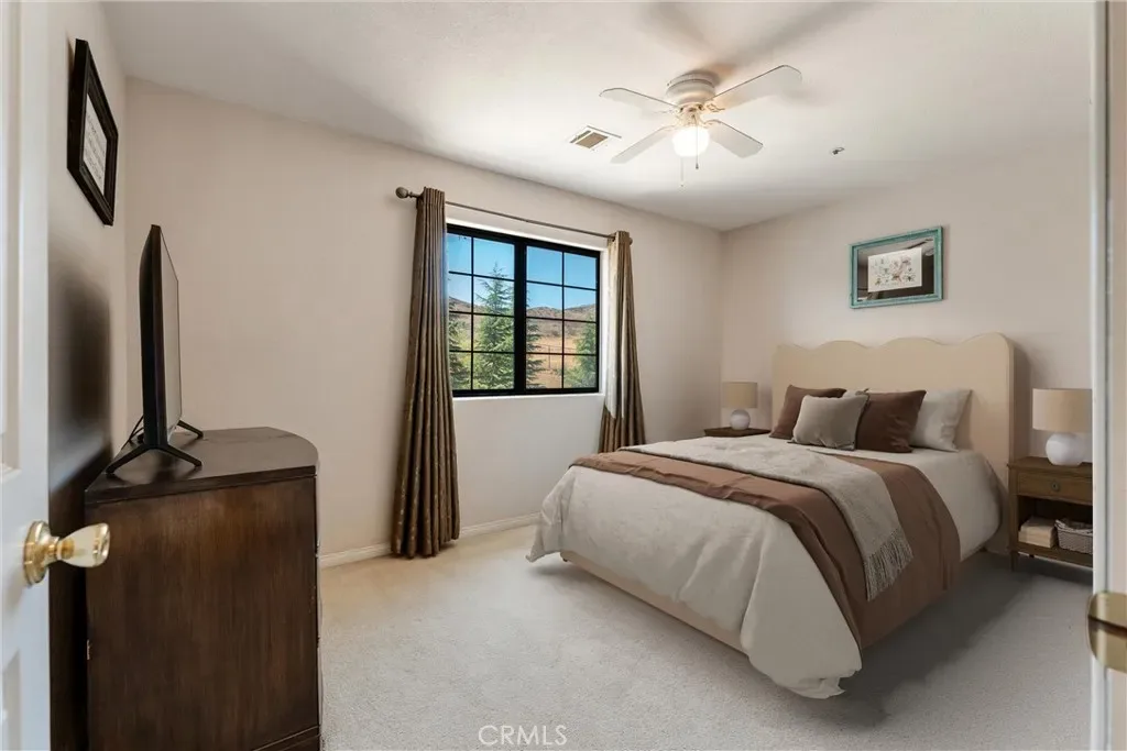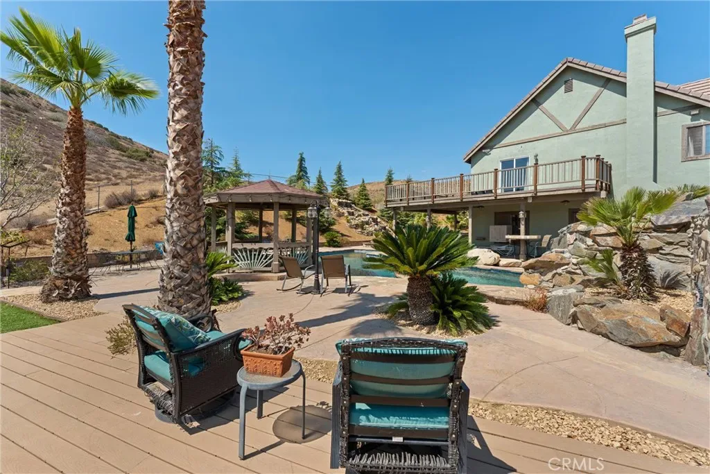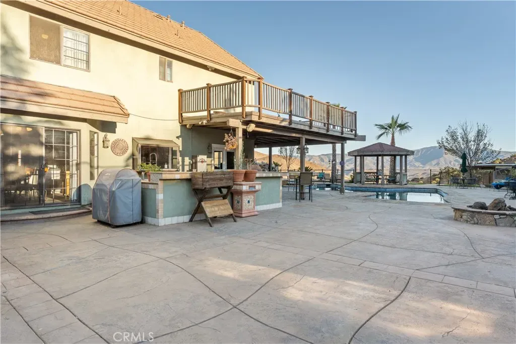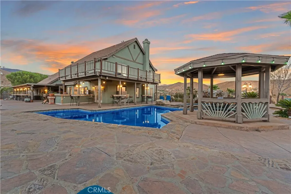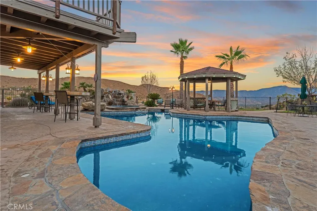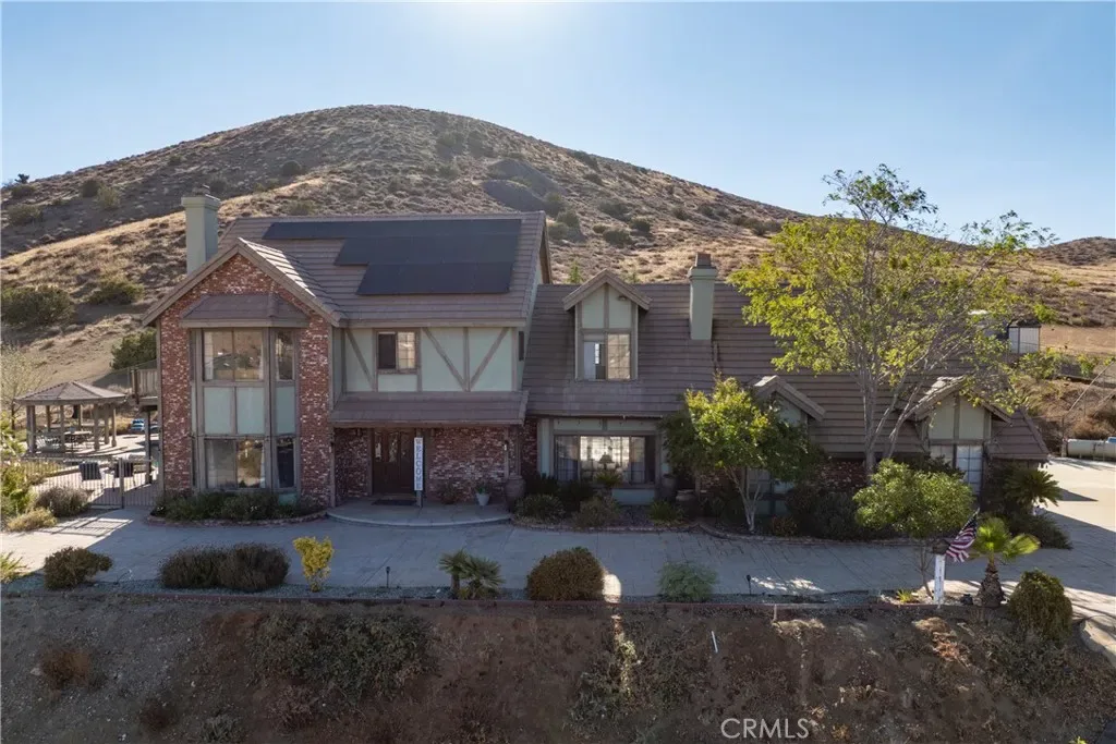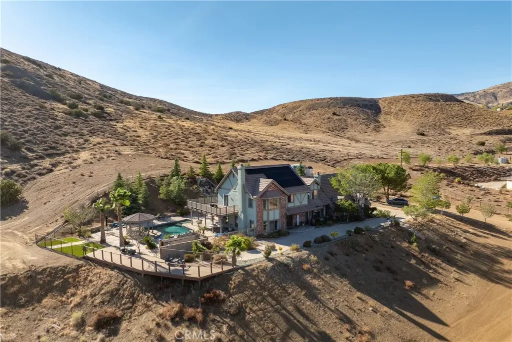 Over 5 acres of private grounds with 365 degree sweeping views of the golden California foothills. Safe and secluded, this elegant property can be your forever home, a private party location, or your equestrian estate. Located in upscale Acton, the elevated hillside terrain affords panoramic views with soft morning sunrises and stunning red sunsets. The 3194 s/f home features large picture widows and, during the day, sunbathed light in every room. With no streetlights nearby, you’ll see the night sky filled with millions of stars and hear nothing but the peaceful quiet. Enjoy these breathtaking views with morning coffee or afternoon cocktails on the (12×60) deck overlooking Acton, or on the second-story wrap-around balcony! The professionally landscaped yard includes lush desert scape, mature pine trees, massive boulders, and a rock waterfall built into the hillside. These encircle a huge, finished outdoor area with heated pool, spa (seats 14 comfortable), custom built-in barbecue, and six built-in high-top tables for that elegant wedding reception, family reunion, or holiday event. The outdoor sound system and cozy fire pit will bring a warm ambience to the chilly evenings. The elegant cobblestone driveway welcomes you to the home’s expansive front door and cozy wood beam and brick façade. Inside are formal and family living areas, five spacious bedrooms, four baths (large bed and full bath downstairs for guests), each of which include windows or doors that open to the magnificent views and office leads to the stunning wrap-around balcony. The newly renovated master ensuite boasts a gorgeous stand alone tub, walk in shower with floor to ceiling marbled tile. Need more space? There is a huge walk-in attic (29Lx15W) A 30×60 workshop with bathroom inside; also a 200 amp panel with 50/30 amp RV hook ups. Have horses? There’s room for them too! 8×24 chicken coop and 20xx24 chicken run. Tesla solar system and back up battery. Private well 6k gal. tank and MUCH MORE!