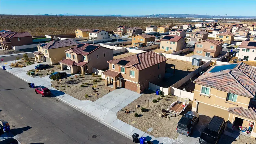 STOP! This is the home you’ve been looking for. A beautifully built 2023 single-family home in Adelanto offering a modern, functional layout and PAID-OFF SOLAR. This move-in-ready residence features 3 bedrooms, 2.5 bathrooms, and 1,583 sq ft of thoughtfully designed living space ideal for today’s lifestyle. The open-concept floor plan showcases a spacious living area highlighted by an upgraded fireplace insert and feature wall, adding warmth and charm to the home. The well-appointed kitchen flows seamlessly into the dining space, making it perfect for entertaining or everyday living. Upstairs, you’ll find generously sized bedrooms, including a relaxing primary suite with a private bath. Situated on a large lot, the landscaped backyard offers ample outdoor space to enjoy, complete with a newly installed patio and concrete pad, perfect for gatherings or future customization. Additional features include central cooling, an attached garage, and energy-efficient construction. Located in a growing community with convenient access to schools, parks, and commuter routes, this home blends modern comfort with everyday convenience. Don’t miss your opportunity to make this turnkey property yours!