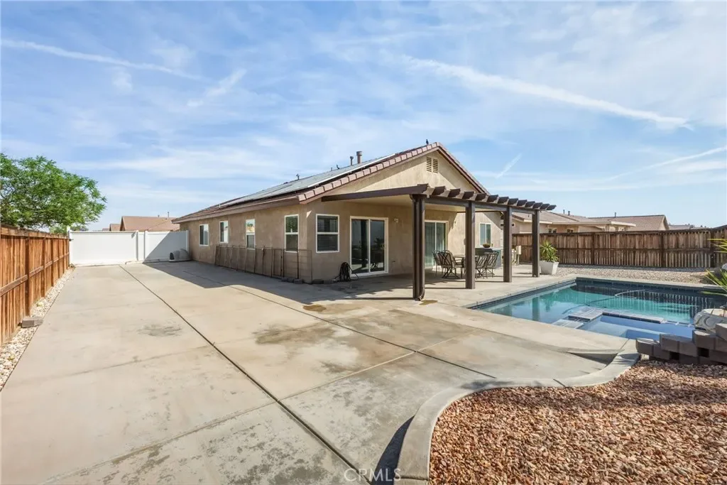 Beautifully remodeled home where modern design meets everyday comfort. The living room, dining area, and kitchen have been thoughtfully upgraded to create a seamless flow-perfect for both entertaining and daily living. The fully remodeled kitchen features stylish finishes, updated cabinetry, and a clean, contemporary feel that will impress any buyer. New flooring runs throughout the home, adding warmth and a cohesive, move-in-ready look. The backyard has a relaxing feel, complete with a pool – and low-maintenance cement, offering a clean, functional outdoor space with endless possibilities. This home is also equipped with solar (buyer to assume solar loan or pay off), helping reduce energy costs while promoting sustainable living. Enjoy the convenience of a smart home system, providing modern control and efficiency at your fingertips. A true turnkey property combining style, upgrades, and lifestyle.