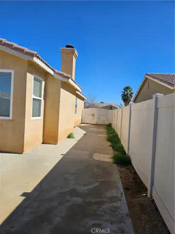 Vinyl fencing, block wall & fully cemented backyard