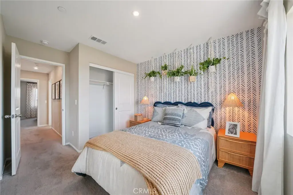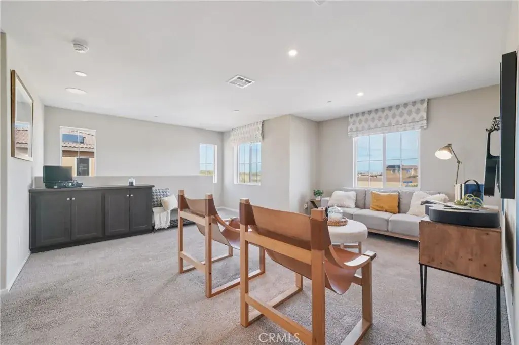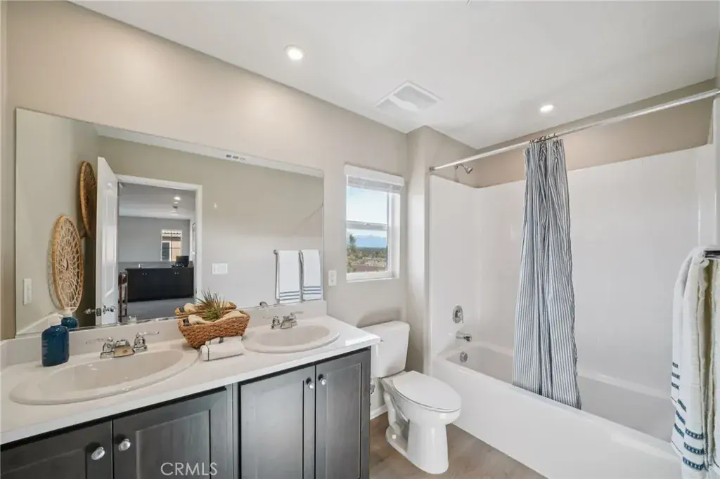 Never lived in and loaded with upgrades — this is the actual FORMER MODEL HOME! ALL FURNISHINGS AND APPLIANCES ARE INCLUDED, making this an incredible turnkey opportunity!! This popular floorplan offering 1,874 SqFt of living space with 4 bedrooms (1 DOWN!) and 3 bathrooms welcomes you with a charming front porch and a long, elegant entry that opens into a spacious, open-concept Great Room and gourmet kitchen. Designed for both comfort and entertaining, the kitchen features stylish cabinetry, granite countertops, brand-new stainless steel appliances, a pantry, and a generous eat-in dining area. The main floor offers a full bedroom and bathroom — perfect for guests, a home office, or multi-generational living. Upstairs, an oversized loft provides flexible space for a media room, study area, or lounge. Additional secondary bedrooms are generously sized and share a bathroom with dual sinks for added convenience. The primary suite is a true retreat, offering expansive space, an oversized walk-in closet, and a spa-inspired bath with dual sinks and a large walk-in shower. Outside, the backyard offers ample space that has been meticulously landscaped complete with artificial grass. Additional features include “America’s Smart Home Technology” for convenient home automation, LED recessed lighting, a tankless water heater, and more. Move-in ready, beautifully appointed, and fully furnished — this home delivers comfort, flexibility, and exceptional value all in one.