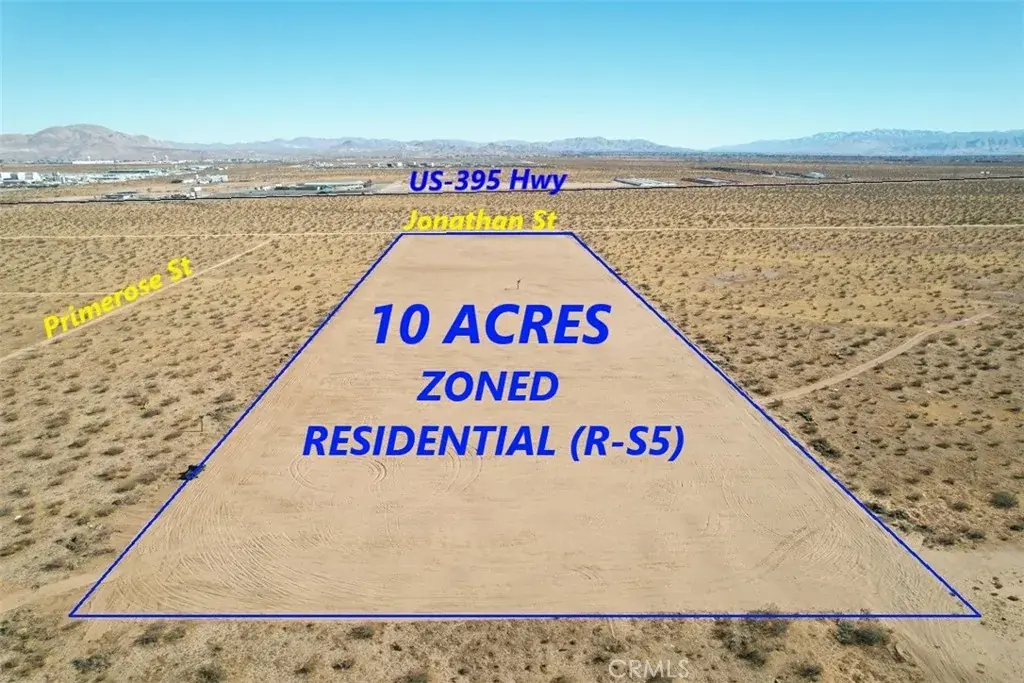 Attention investors and developers: here’s a fantastic chance to own a 10-acre parcel of land zoned R-S5 (Residential Single Family 5), with sewer access on Jonathan Street per the City of Adelanto maps, in a fast-growing area. This prime property is ideally located, bordered by established residential communities to the south. To the northeast, plans for a new airport promise big infrastructure upgrades, including the state-of-the-art GE Pratt & Whitney Jet Engine Test Facility and an express air freight terminal, boosting connectivity and commercial growth potential. It’s perfectly positioned for residential development, especially with the upcoming High Desert High-Speed Train linking Victorville to Las Vegas, expected to create over 10,000 jobs and drive housing demand. Nearby are major transport and logistics hubs like the Southern California Logistics Airport (SCLA) and the AMB Adelanto Gateway. Frontier Homes is just south of the lot, pointing to more residential growth in the area, and Victoria Magathan Elementary School is conveniently close. This property is full of potential—don’t miss out! Google Maps coordinates to the sign on the property: 34.552722, -117.408333. Bring your offer today.