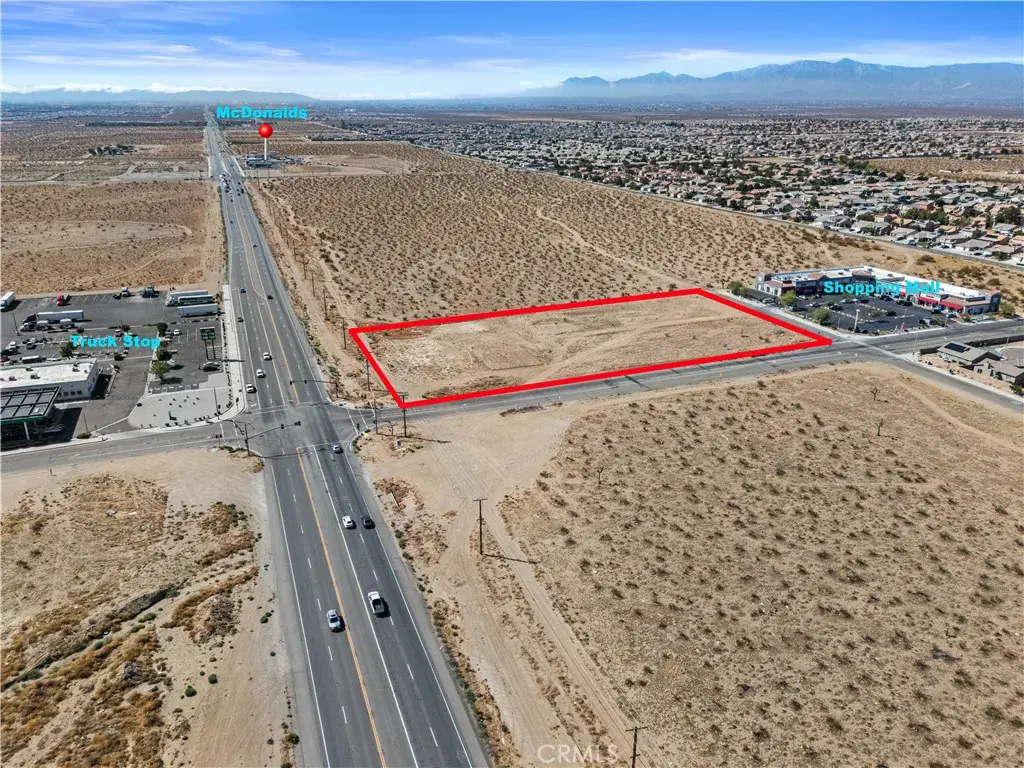 Prime commercial parcel located at the signalized intersection of Highway 395 and Cactus Road in Adelanto. This property offers excellent exposure with an estimated 30,000 vehicles per day along Highway 395, making it ideal for retail, service, or mixed-use development.
