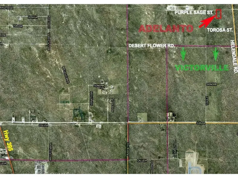 2.76 acres of level lot, within the city limit of Adelanto, 3 miles W. of future SCLA businesses park, 1 mile W. of highly travelled Hwy 395