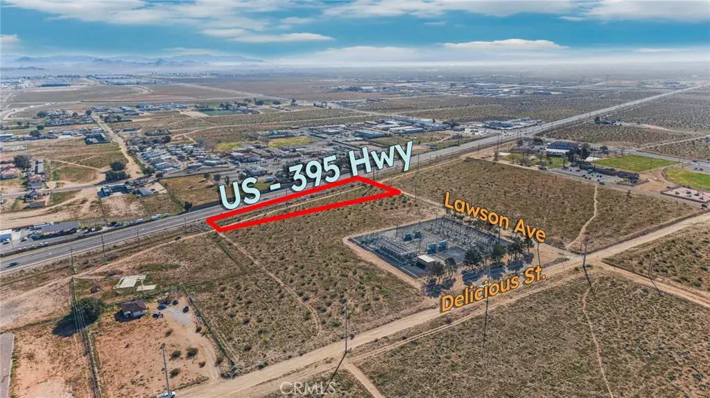 Prime vacant land opportunity in Adelanto, CA, offering excellent potential for commercial, mixed-use, multi-family, or investment development (buyer to verify all zoning, permitted uses, and entitlements). The property is highly visible with strong exposure to Highway 395 traffic and is located near the proposed Caltrans signalized intersection at Lawson Ave and Hwy 395 (buyer to verify status and timing). Adjacent to major utility infrastructure, including Southern California Edison, with water, power, and sewer nearby. Close proximity to the San Bernardino County Sheriff’s Department (Adelanto Station), Adelanto Branch Library, Adelanto City Hall, and a public park, along with surrounding commercial activity, enhances accessibility and appeal. An excellent opportunity for developers or investors seeking visibility, infrastructure access, and growth potential.