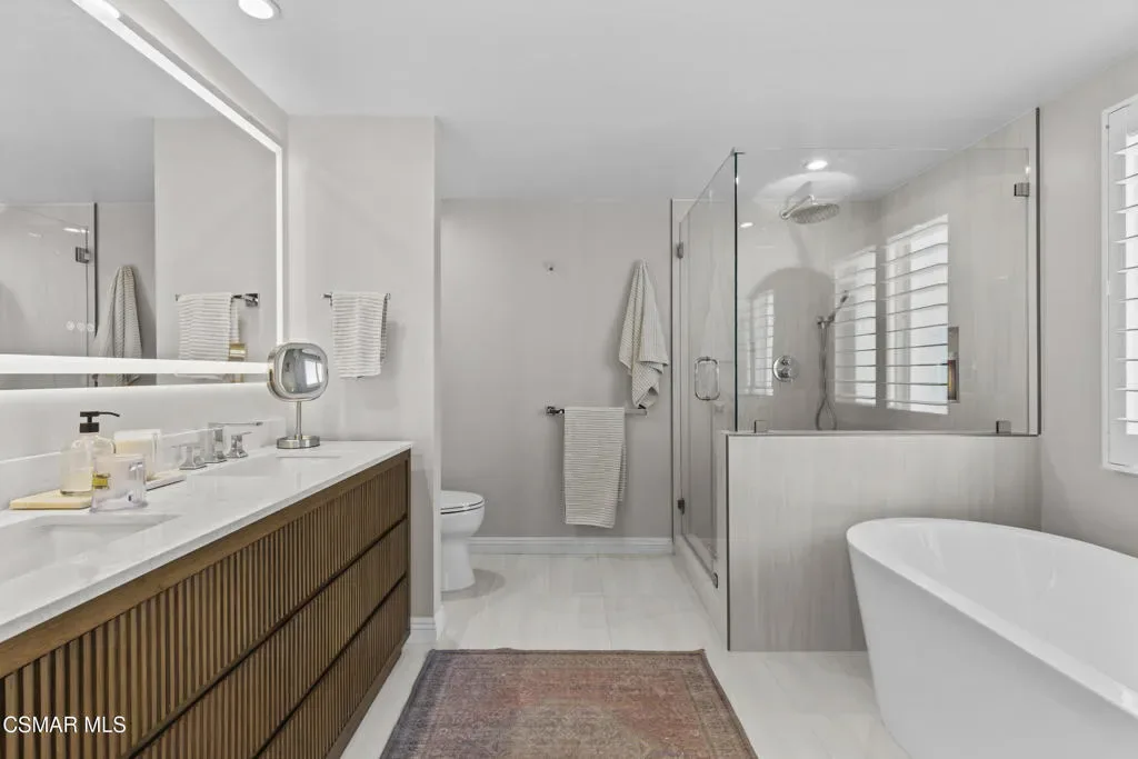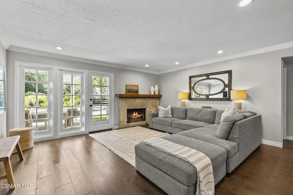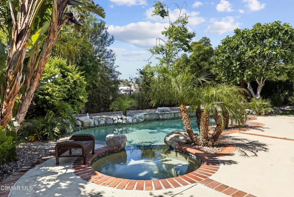 Enjoy this beautifully maintained cul-de-sac home with a private backyard offering serene tree views–no rear neighbors. The outdoor space features a pool, spa, lawn, and a spacious patio, perfect for relaxing or entertaining. Ideally located near parks, shops, restaurants, a Blue Ribbon elementary school, and Agoura High School.Inside, a downstairs bedroom is currently used as an office. The eat-in kitchen overlooks both the family room and backyard and includes updated appliances, oak cabinetry, and attractive tile countertops. The living room and primary suite feature soaring ceilings, creating an open and airy feel.The inviting primary suite offers a private balcony with scenic tree and hill views, a well-organized walk-in closet, and an en-suite bath with separate tub and shower. Additional highlights include raised panel doors, recessed lighting, updated furnace, A/C, and water heater, indoor laundry, a bay window, and a three-car garage.