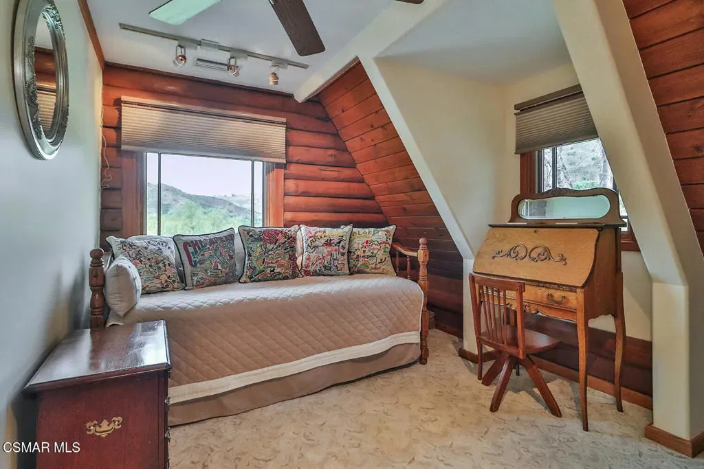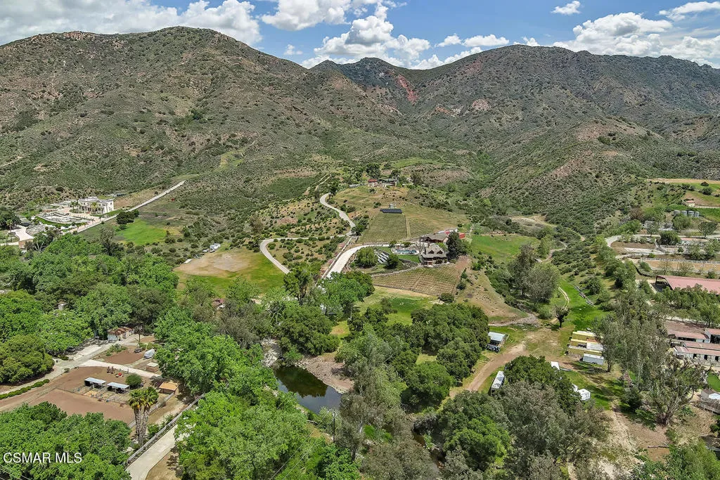 Private vineyard estate with international award winning wines! Welcome to 3030 Triunfo Canyon Rd. A storybook retreat in the heart of nature. Escape to a private paradise nestled in the rolling hills of the Santa Monica Mountains in Agoura. The total living space on this spectacular property is approx. 4,600 sq.ft per owner, which includes the guest house and built out basement. All structures on the property are powered by a fully owned 12KW solar system installed in 2019. This is a rare and captivating log home estate situated on just over 9 acres of breathtaking beauty. This property was approved in 2020 for a large barn and has plenty of flat land for equestrian activities and arenas. Just minutes from the iconic city of Malibu and Zuma Beach, this enchanting property offers the ultimate in peaceful living, exceptional views, outdoor splendor and timeless elegance. At the heart of the estate lies a warm and welcoming 3 bedroom, 2 1/2 bath custom log home meticulously updated by master craftsman Herb Meeker. The home has a versatile, approximately 1000 ft. non permitted built out basement, featuring an office, family room, gym area, 1/2 bath with a separate entrance and lots of storage space. Upon entering the home, you are welcomed by a cozy family room and gorgeous stone fireplace. Enjoy the well appointed kitchen where there is a spacious pantry as well as gorgeous views and a breakfast bar that flows into a spacious dining room. The living room is a perfect spot to cozy up at the end of the day. The upstairs is perfectly situated with a primary bedroom, 2 secondary bedrooms, and an extra room with no closet, yet perfect for crafting or office space. Enjoy entertaining with the perfectly situated outdoor kitchen designed for unforgettable gatherings under the stars. In addition, there is a separate approx. 1,000 sq ft guest house. Enjoy cozy evenings by the fireplace and mornings spent on the porch where the lavender fields sway gently in the breeze. With its own bedroom, living room, bathroom and an inviting fireplace, it’s ideal for guests, creative pursuits or a private retreat. Wander through the property and discover two lush permitted vineyards, producing international award-winning wines, perfect for the aspiring vintner or wine enthusiast. (Expansion of the vineyard has been granted by L.A. County.) Relax in the grand sparkling pool and spa nestled against a backdrop of majestic mountain views. Below is a tranquil creek that winds its way through the landscape, adding a touch of serenity to every step. In addition, there is a 5 car finished garage, ideal for car enthusiasts, hobbyists, or anyone seeking extra space for a workshop, home gym or studio. Located at the top of a gated entrance and long private driveway, ensuring both privacy and grandeur from the moment you arrive, this is more than a home, it’s a lifestyle. Whether you envision a private equestrian estate, a boutique vineyard retreat, or simply a secluded sanctuary surrounded by nature, 3030 Triunfo Canyon Road offers endless possibilities in an unparalleled setting.