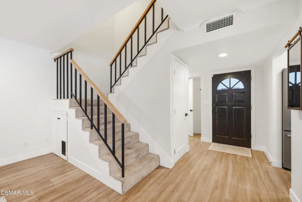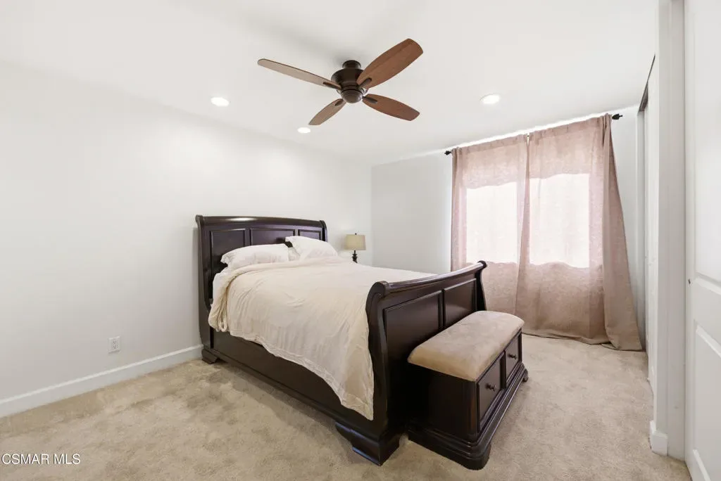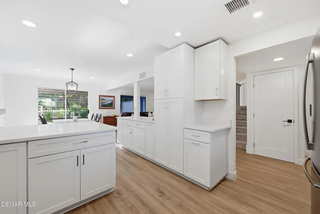 Beautifully updated two-story home in the highly desirable Lake Lindero community, backing to the golf course and offering peaceful, scenic views. Light and bright throughout, this inviting residence features an updated kitchen with high-end white cabinetry, quartz countertops, and stainless steel appliances. The kitchen opens to a comfortable dining area with a fireplace and direct access to the backyard, creating an ideal indoor-outdoor flow.The wraparound patio offers multiple spaces to relax and enjoy the serene golf course setting. The low-maintenance yard enhances the easy living lifestyle. The main level and upstairs bathrooms feature durable LVP bamboo flooring, a convenient half bath for guests, and abundant storage with multiple closets throughout.Upstairs, the spacious primary suite enjoys golf course and mountain views along with an updated natural light filled, ensuite bathroom with tiled shower. One additional guest bedroom also captures these beautiful views, while two more bedrooms and a fully updated guest bath with tiled tub/shower combo provide flexibility for family, guests, or a home office.Residents enjoy access to Lake Lindero Golf Course amenities including golf, pool, dining, and a variety of community activities. A wonderful lease opportunity in a prime location.
