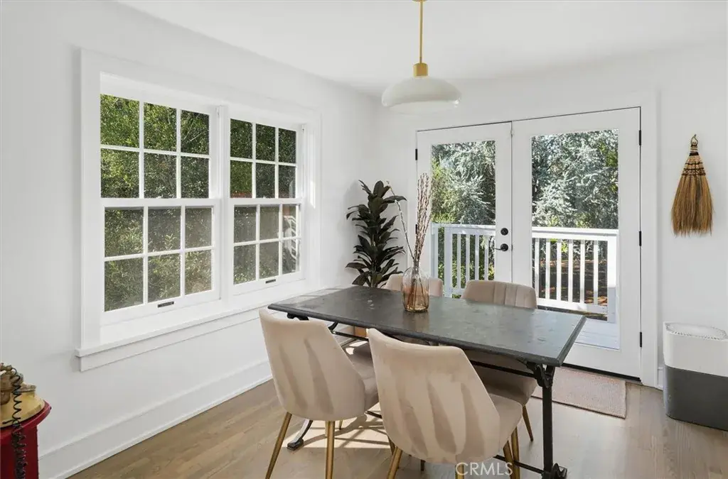 The light-filled main living spaces feature refinished floors, freshly painted cabinetry with new hardware, and thoughtfully updated finishes throughout. The kitchen combines charm and function with new quartz countertops, stylish tile backsplash, open shelving, upgraded lighting, and Waterstone fixtures including a farmhouse sink and pot filler. Perfect for entertaining, the open-concept living room and dining area flow effortlessly into the outdoor spaces.