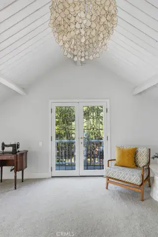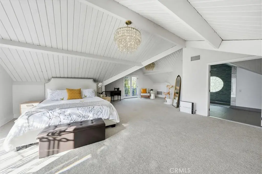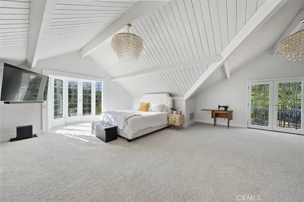 The top-floor primary suite is a peaceful retreat with beamed ceilings, ample natural light, character and charm, and a private balcony overlooking the backyard and mountain views. The ensuite features a soaking tub, large tiled shower with a window, steam room, and a spacious walk-in closet fit for a dream wardrobe.