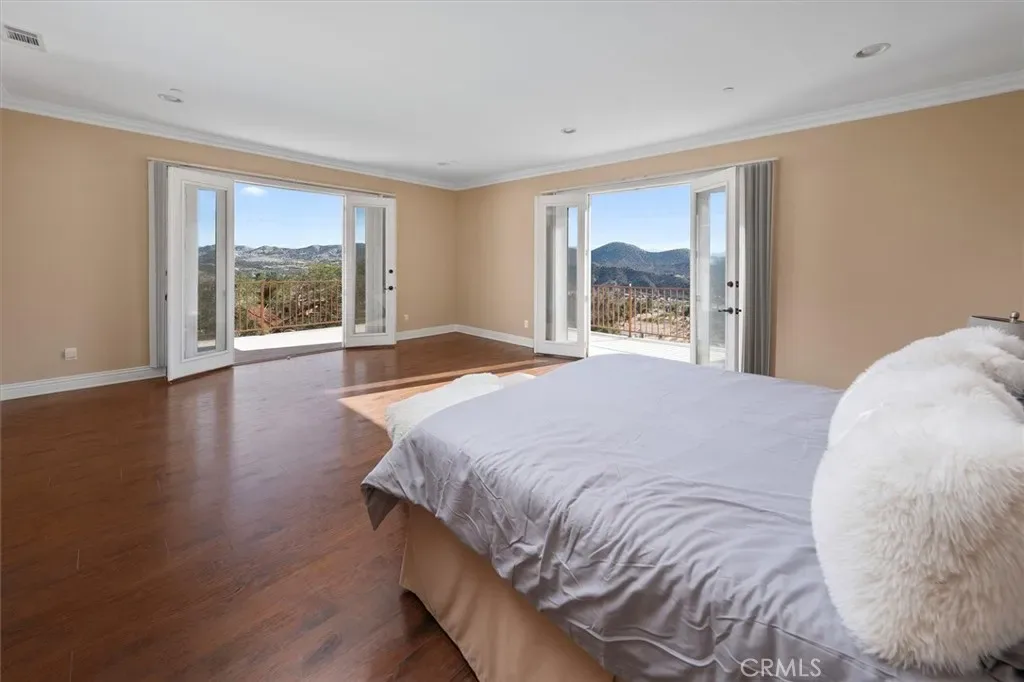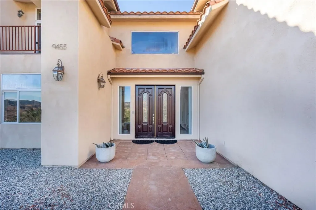 BEST PRICED SINGLE FAMILY HOME PER SQUARE FOOTAGE IN ALL OF AGUA DULCE! This is a INCREDIBLE HOMEOWNERSHIP OPPORTUNITY you do not want to miss. This Prime Agua Dulce location offers views, total privacy for a quiet & peaceful location while also being close to the winery & town conveniences. Come up the long secured & gated paved driveway entrance to visit this sprawling 5,794 square feet home & discover a motor courtyard area providing ample parking for all your guests to park with room to spare for your personal parking & storage needs. This home will greet you with a formal foyer entry space offering vaulted ceilings, wrought Iron spiral staircase banisters plus custom high-quality moldings & high-grade travertine tile throughout the downstairs of this home. This home features many larger windows offering a light & bright feel throughout the interior while also providing fantastic views of the beautiful Agua Dulce mountains, countryside & beyond. This home was built in 2007 with 5 bedrooms & 5 bathrooms plus an oversized 3 car garage & on over 6 acres of which approx. 1.5 is usable & flat with space to the south side of the home offering room for an entertainer’s pool. There are upgraded stainless steel appliances with a large Viking refrigerator, high quality updated & upgraded hardwood kitchen cabinetry, granite countertops throughout the kitchen & abundant amount of cabinet & storage space throughout the kitchen plus also providing a walk-in pantry. On one side of this home you will have a formal living room, family room & dining room space along with a breakfast room while on the other side having a generously sized downstairs bedroom & bathroom with a walk-in closet. Walk upstairs & you will find wood flooring throughout the upstairs of the home. The primary bedroom suite is on the south side of the home providing a large deck area with a large sitting room for a separate living space & a large bathroom off of the main bedroom that offers a spa / jacuzzi tub, separate shower & a possible steam room as well. There are several balconies/deck spaces for the bedrooms for outdoor living spaces while many bedrooms having their own on-suite bathrooms with large closets & larger windows for an open & bright living space. This is a uniquely designed home with a well thought out floor plan while providing exceptional features for the quality, materials & craftsmanship & price for the square foot value in the area! Public water company provides water service.