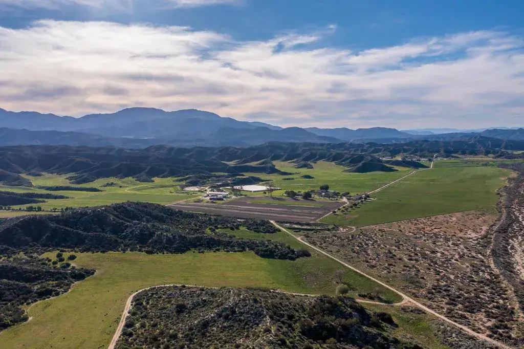 Stardust Ranch encompasses approximately 1,640± contiguous acres in the Sage Hills east of Temecula, representing one of Southern California’s notable working ranch and agricultural holdings. The property includes exceptional water resources with senior water rights, three productive wells, a year-round spring, and a 2.5± acre reservoir that supplies irrigation across roughly 700 certified organic acres. The lower ranch offers highly usable land well-suited for farming, livestock, and potential mitigation uses along Wilson Creek. Improvements include two residences, a shop with studio, barn, greenhouse, and covered agricultural work area. The ranch blends productive soils, abundant water, and a scenic setting surrounded by conserved lands, approximately 20 minutes from Temecula. A unique opportunity to own a significant, water-secure ranch in Southwest Riverside County. Full list of APNs (15 total) 581-170-016, 581-170-013, 581-180-005, 581-180-009, 581-190-013, 581-190-014, 581-070-005, 581-070-002, 581-100-019, 581-100-020, 581-100-038, 581-100-039, 581-100-040, 581-100-021, 581-100-022