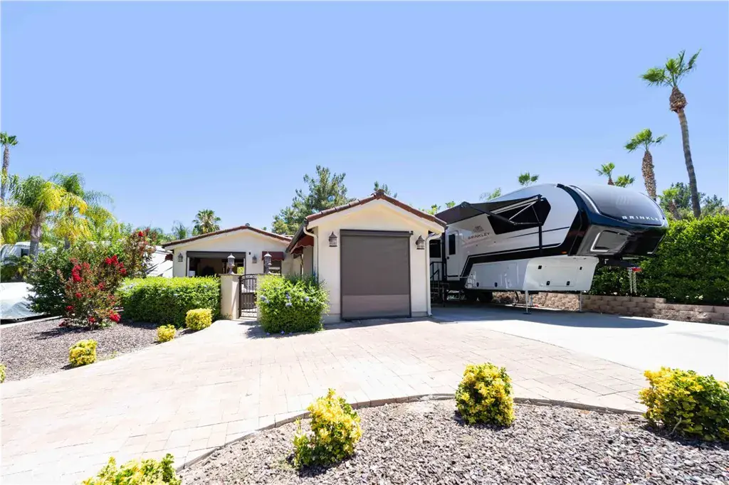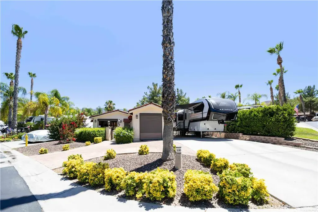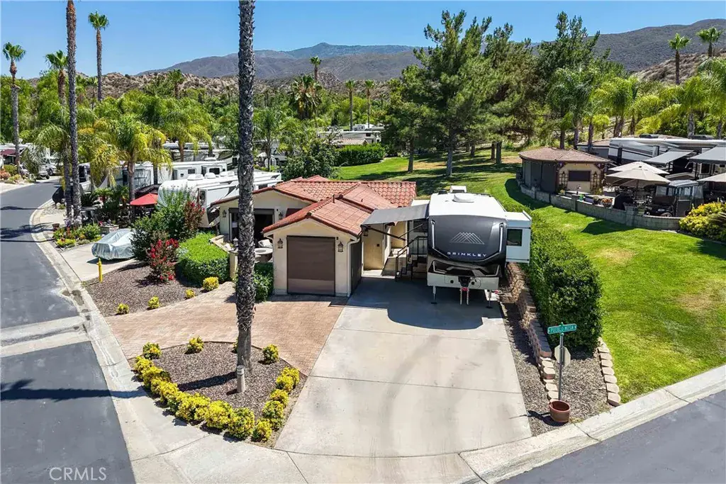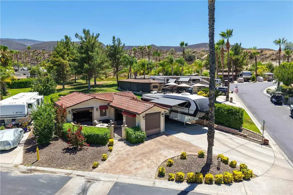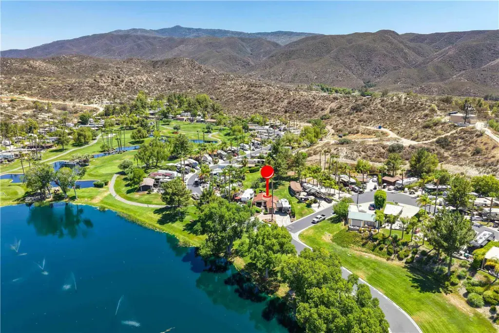 An Absolute Must See Property at the Resort. This Place has Everything – Full Kitchen with Residential Frig, Stove & Microwave w/Granite Counters with Sitting Island, Full and Separate Dining Room with Access to Large Backyard for Extra Dining Area and Privacy Wall/Trees, Step Down Huge Family Room that Leads out to the Courtyard Overlooking the Fishing Pond. You might get Lost in this place, there is even a Laundry Casita with W/D and extra room for the Golf Cart, full Electric Screens throughout the Buildout and lots of Room for Parking Large Vehicles. Huge Grassy Common Area outback and on the Side for Games or even and Easter Egg Hunt, Wait until you see this one. Included in Rancho California RV Resort is a 14 hole Executive Golf Course that is free for owners, 5 Pools and Jacuzzi areas, Tennis Courts, Pickle Ball Courts, Laundry Rooms, Dog Park, Horse Shoe Lawn, Club House, Hiking Trails, and Restaurant all inside Gated Community that is Guarded 24/7. You can live here or rent your space. HOA includes golf, trash, water and common area yard maintenance. Peace and quiet serenity all just 25 minutes from Temecula Wine Country. No age restrictions. Come on over and check this hidden gem of a place out.