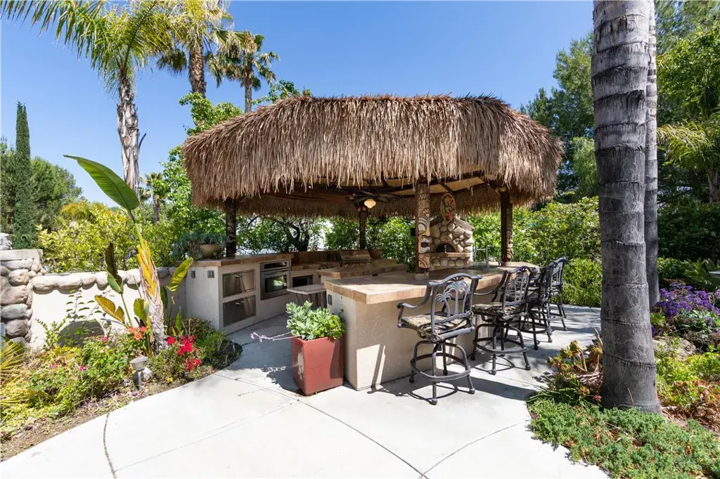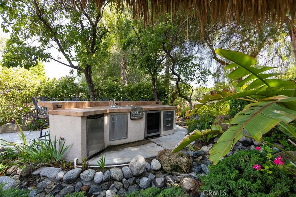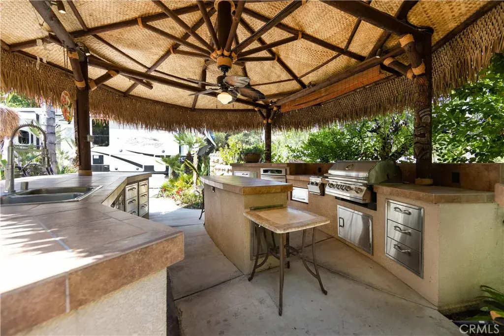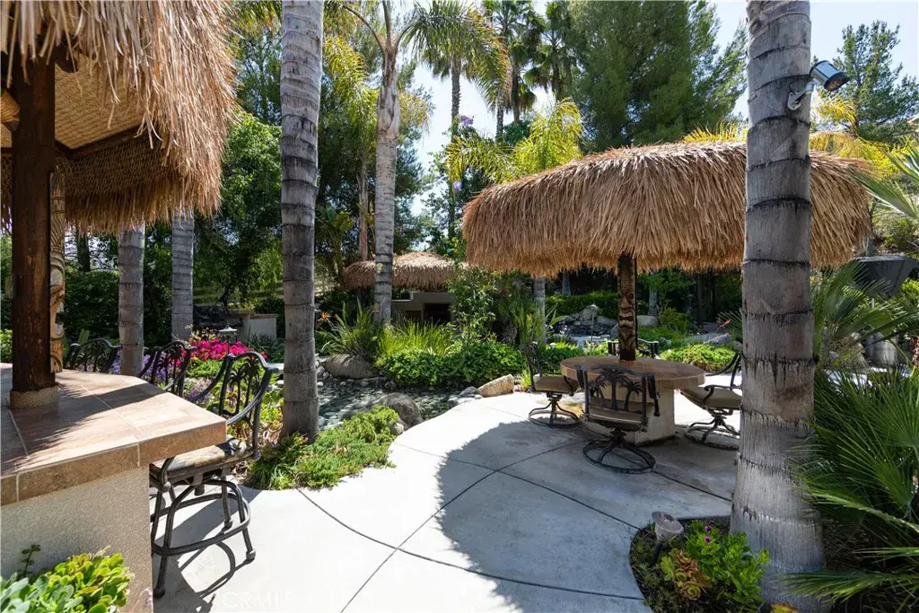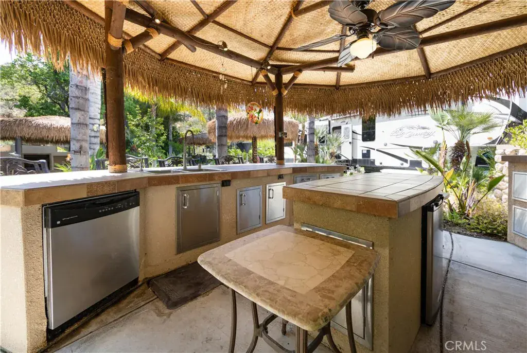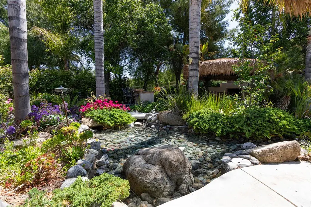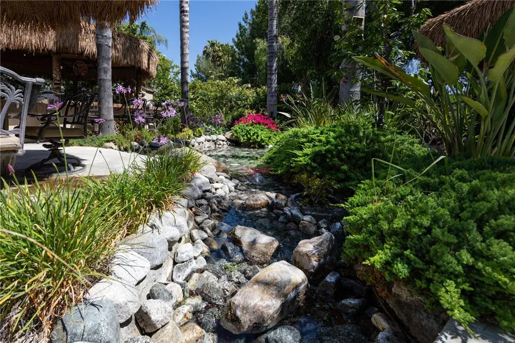 Gargantuan price check, Gargantuan Lot with a Private Waterfall & 3 Ponds with Streams running right down the middle of the property. Water World with Lots of Shade Trees, backs to a hill (Very Private), 4 large New Palapa covers housing an Oven, Built-in Lion BBQ, Stove Top, 2 Fridges, Pizza Oven, Fireplace, Dishwasher and Storage. Washer/Dryer Island with folding area, Bar Caddy, frige and Wine Cooler with Island…. So much Entertaining can happen on this property, bring your green thumb and get some peace and tranquility. One of the most unique Properties in the Park