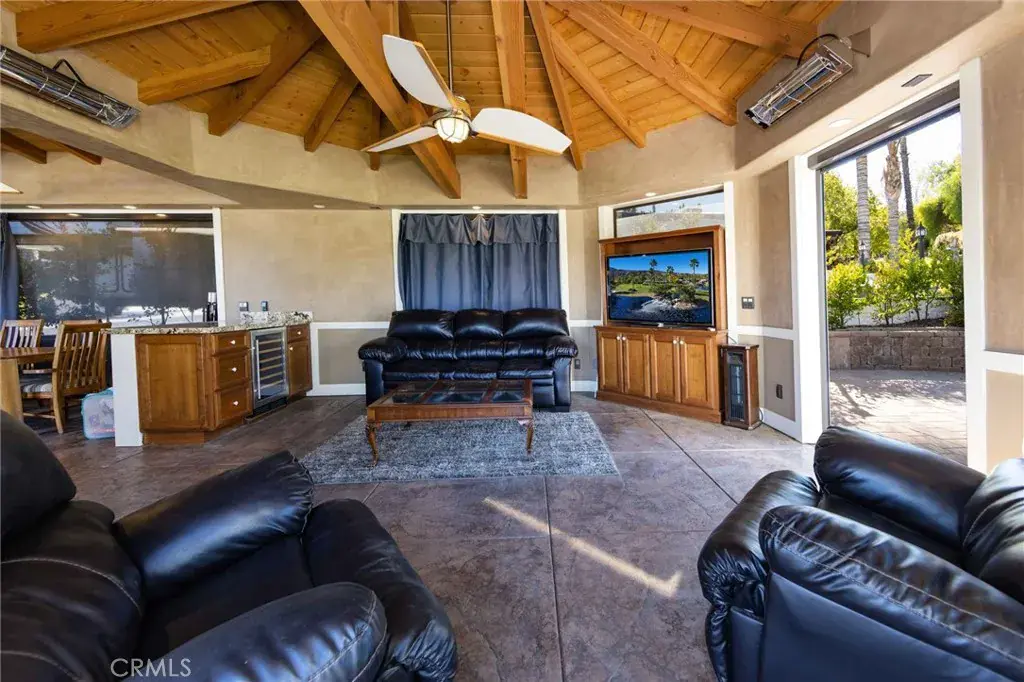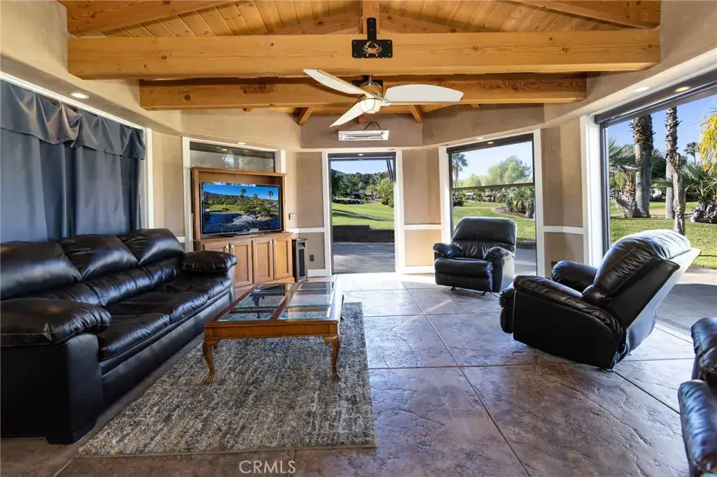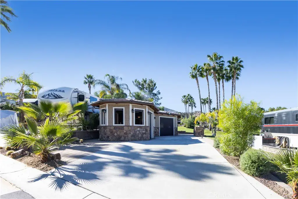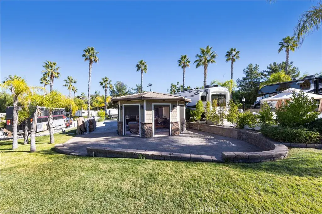 Amazing Waterfall Views with Sunset in the Background. Gorgeous Pond and Golf Course Panoramic Backdrop just steps away from Large Fully Screened in Build-Out. Kitchen is Awesome with Granite Counters, Double Oven, 2 Fridges and lots of Storage. Dining room has its own storage Island and walk out doors to RV. Family Room is Massive with Electric Screens, insulated Window Frames, Beverage Cooler and Ceiling Heaters. Build-Out ceilings are large Open Wood Beams with natural colors. Washer/Dryer hookups with Island included. This is a must see property at the Resort. Looking for an RV Resort lot with space and privacy then come check out this perfect location nestled among the foothills of Palomar Mountain, minutes from Temecula Wine Country as well as a convenient location to Palm Springs in just under an hour, 1.5 hrs to San Diego and 1 hr to the beach in Oceanside. Rancho California RV Resort provides amenities such as a 14 hole Executive PAR 3 Golf Course (no fees for owners), 5 Pools/Jacuzzis, Tennis courts, Pickle-ball courts, Dog park, Club house, hiking trails, Horseshoe lawn and onsite grocery market. The resort is guard gated with no age restrictions. Monthly HOA fee includes use of the golf course, amenities, trash pickup at lot, water/sewer and common area maintenance. If you are considering a premier Southern California RV destination, don’t miss out on visiting Rancho California RV Resort – Financing Available, schedule a showing today! RV also 4Sale…