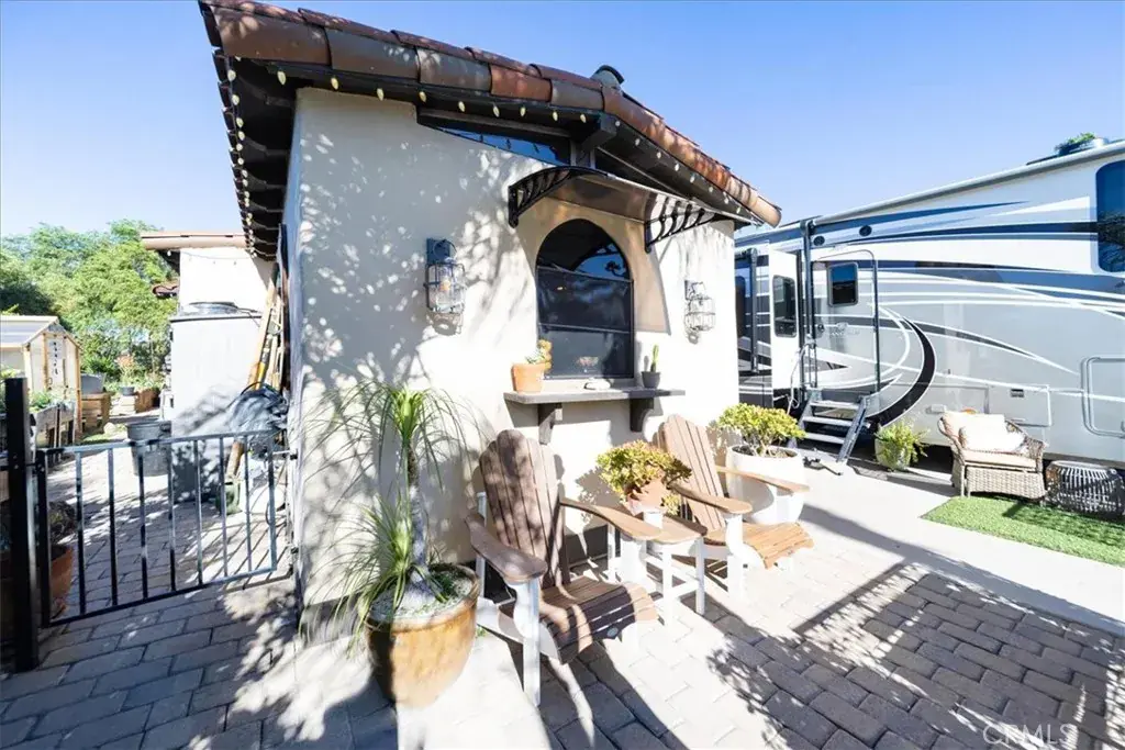 Amazing home site feel…. Oversized site with a 2 huge buildings is totally private. 2nd build-out perfectly appointed with fitness area and sauna, get fit… Main build is over 900 square foot stucco building has 3 rooms all covered by a solid roof, beautiful wood & beamed ceilings, fans and recessed lighting. Fully Screened in, including screen doors to keep it cozy and dry. Gorgeous flooring through out the build-out. The kitchen is complete with all the conveniences you would want in a home. Full size stovetop and Microwave/Convection oven, refrigerator and freezer, large sink, beautiful countertops, not to mention large amount of storage throughout. Just on the other side of the kitchen is a large dining area for full size dining table and chairs for good size group gathering. Just past the dining room is the living room with plenty of room for some comfortable furniture to relax in. Step out to the back and notice stone pavers in a private patio area for BBQing and comfort. Also in the back is a perfect garden with privacy hedges and small quaint sitting area. Looking for an RV Resort lot with space and privacy then come check out this perfect location nestled among the foothills of Palomar Mountain, minutes from Temecula Wine Country as well as a convenient location to Palm Springs in just under an hour, 1.5 hrs to San Diego and 1 hr to the beach in Oceanside. Rancho California RV Resort provides amenities such as a 14 hole Executive PAR 3 Golf Course (no fees for owners), 5 Pools/Jacuzzis, Tennis courts, Pickleball courts, Dog park, Club house, hiking trails, Horseshoe lawn and onsite grocery market. The resort is guard gated with no age restrictions. Monthly HOA fee includes use of the golf course, amenities, trash pickup at lot, water/sewer and common area maintenance. If you are considering a premier Southern California RV destination, don’t miss out on visiting Rancho California RV Resort – schedule a showing today! Financing Available…..