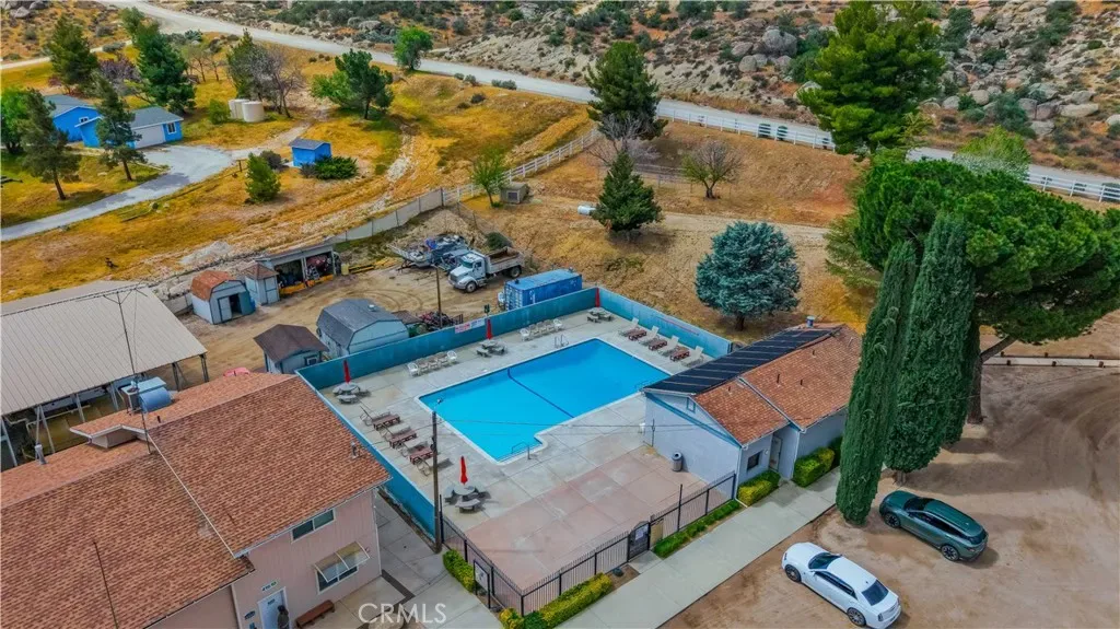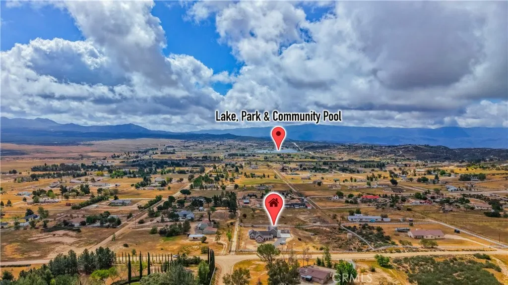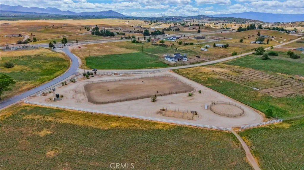 Stunning custom home in the gated community of Lake Riverside Estates featuring TWO primary suites and breathtaking views of Lake Riverside and Cahuilla Mountain, all set on over 2.5 acres of usable land. Designed with both comfort and flexibility in mind, this expansive home offers a bright and open floor plan with high ceilings, recessed lighting, tile flooring, new hardwood flooring on stairs to upper level and new main level AC with also including ceiling fans throughout. The chef’s kitchen is a true centerpiece, showcasing granite countertops, an apron sink, center island, breakfast bar, stainless steel appliances, and a custom range hood, all framed by soaring vaulted ceilings and large windows that fill the space with natural light. The main level features a spacious primary suite with a sitting area, walk-in closet, crown molding and a well-appointed bathroom with a jetted tub and walk-in shower, along with two additional bedrooms conveniently located on the main floor. The living room offers a cozy fireplace and French doors that enhance the indoor-outdoor flow, while a formal dining room provides the perfect setting for gatherings. Upstairs, a second private primary suite offers incredible versatility with its own bathroom, dual closets, coffee bar, a mini refrigerator, plus its own AC, heating system, and tankless water heater, making it ideal as a guest retreat, multigenerational living area, game room, or home office. Enjoy peaceful mornings or evening sunsets from the private balcony overlooking the surrounding landscape, gorgeous mountain views and a lake view! The property is fully equipped with newly installed automatic gates with remotes, fully fenced, a large concrete parking pad, offering ample space for RVs, boats, trailers, and more, along with an oversized 3-car garage and additional storage room. There is also a co-op with the electricity for a discounted rate. Located in the highly desirable, equestrian-friendly community of Lake Riverside Estates, residents enjoy access to a private lake, pool, clubhouse, airstrip, and riding trails, all while embracing the privacy, space, and natural beauty that define this exceptional property.