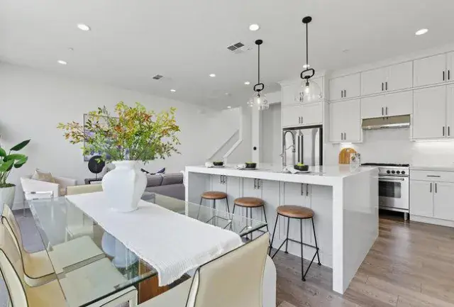*Rare 2.5% assumable rate mortgage opportunity* Discover elevated living in this upgraded 4 bed, 4 bath condo built in 2022. Street facing with rare privacy, no front neighbors, open park views, and abundant natural light. The flexible multilevel layout begins with a first floor bedroom and ensuite bath featuring soaring 14 foot ceilings, ideal for guests, a home office, or multigenerational living. The open second level showcases floor to ceiling windows and a seamless layout designed for entertaining and everyday living. The chefs kitchen features high end Italian appliances, custom cabinetry to the ceiling, quartz waterfall countertops, a large storage rich island, and built in cabinetry, flowing effortlessly into the dining and living areas. The upper level includes a spacious primary suite with dual sinks and a walk in closet, plus an additional ensuite bedroom with walk in closet. Additional highlights include a fully SMART tech enabled home, extra built in storage, LG ThinQ washer and dryer, Level 2 EV charging, and an oversized one car garage with epoxy flooring. Ideally located near waterfront parks, Seaplane Lagoon, ferry terminals, excellent schools, and easy access to San Francisco and Oakland. Low HOA dues. Don’t miss this exceptional opportunity.