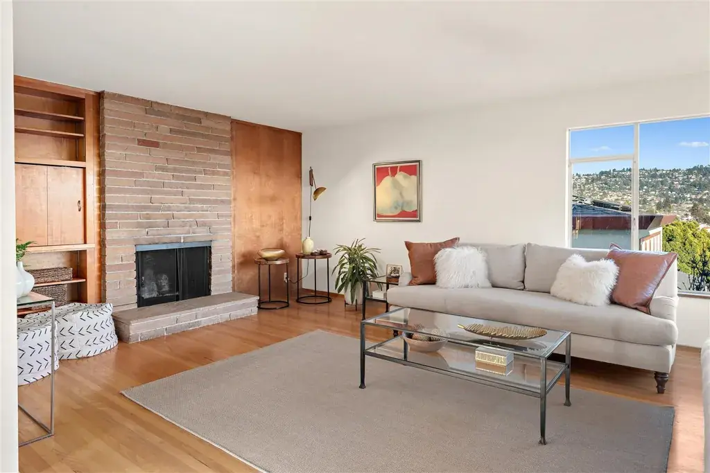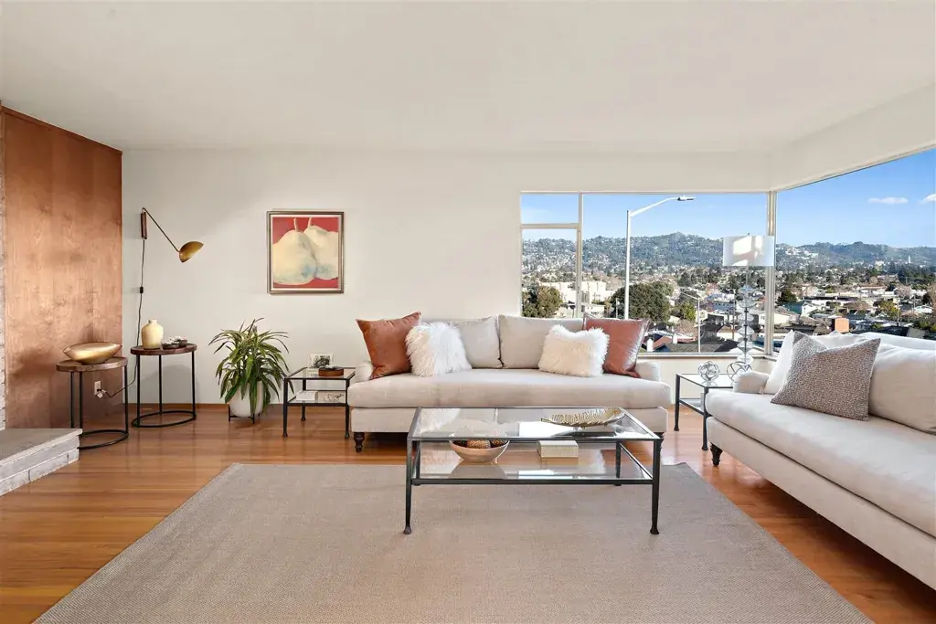 Mid-century modern residence circa 1959 with original trim, situated on Albany Hill. Huge living room affords expansive views of Albany, Berkeley, and the Port of Oakland. Gleaming hardwood floors and built-ins. Large, open kitchen with new gas cooktop (2026), granite counters, and convenient breakfast bar. The formal dining room and the kitchen both have city and water views. 3 bedrooms, 2 baths on the main floor. The 4th bedroom is en suite, with a separate entrance on the first floor. Potential au pair, in-law, or rental unit*. Double-car garage and low-maintenance yard. Fruit trees, including persimmon, lemon and plum. Located in a peaceful neighborhood. Short distance to Solano shops and restaurants, plus Albany’s top-rated schools. Easy access to wonderful trails along the Bay. *Buyer to investigate. **Buyer to verify school district/availability.