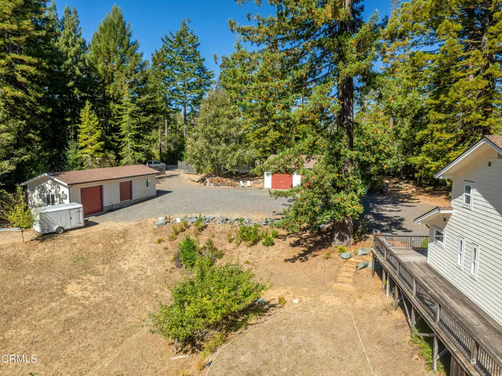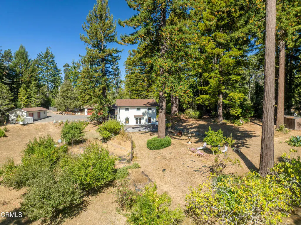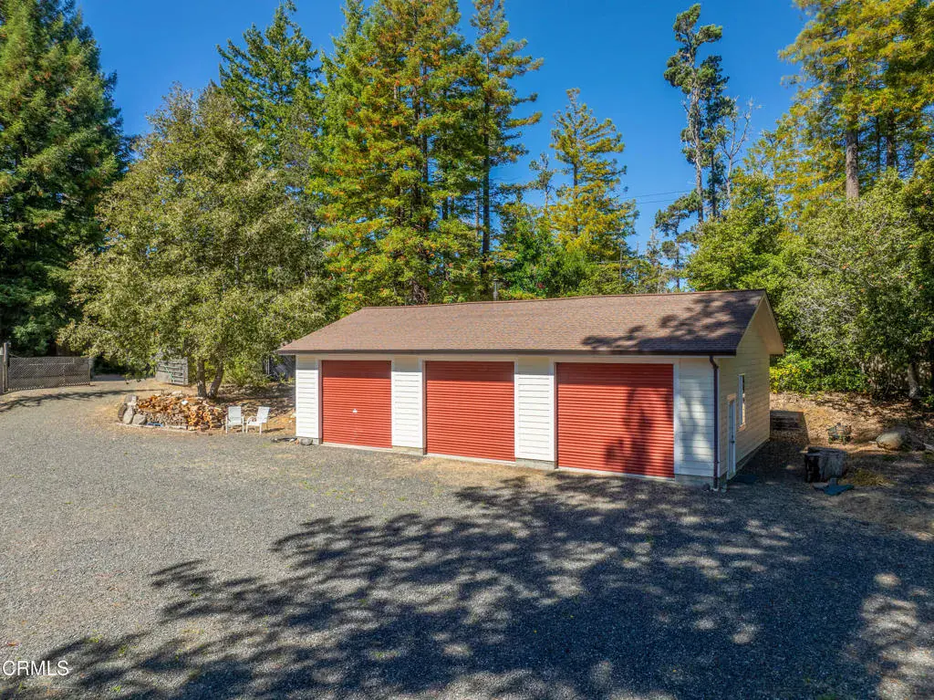 Secluded Mendocino Coastal Retreat Near Highway 1Conveniently located minutes from Highway 1 and the charming, historic town of Mendocino, this private, elegant residence blends practical luxury with coastal serenity. A permitted ADU sits at the heart of the property, offering sophisticated income potential or a private guest suite, each with its own power and propane meters to preserve the main residence’s unobstructed views. The main home itself is designed for seamless indoor-outdoor living, with a wraparound redwood deck flowing to a flagstone patio crowned by a tasteful fire pit and shaded by towering coastal redwoods for serene privacy.A four-car detached garage provides ample storage, versatile workspace, and generous parking options. With five roll-up doors, a sleeping loft, built-in office area, and additional space for hobbies or entertaining, it’s ideal for a home workshop, collector cars, or multi-use living.A gated entrance with extensive gravel parking enhances privacy and convenience, including generous room for RVs and trailers. The Albion redwoods frame a mature orchard and thoughtfully finished interiors, while climate control is reliable with a Fujitsu mini-split system and a propane/electric Runtal heater to balance comfort on cooler nights. Two robust wells supply ample water for the residence and irrigation, supporting a thriving garden and plantings.This Mendocino Coast gem blends practical features with timeless beauty, offering luxury, comfort, and seclusion in a coastal, tranquil setting.