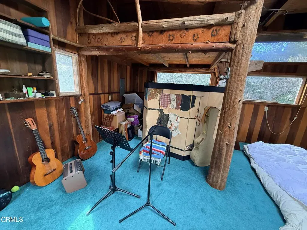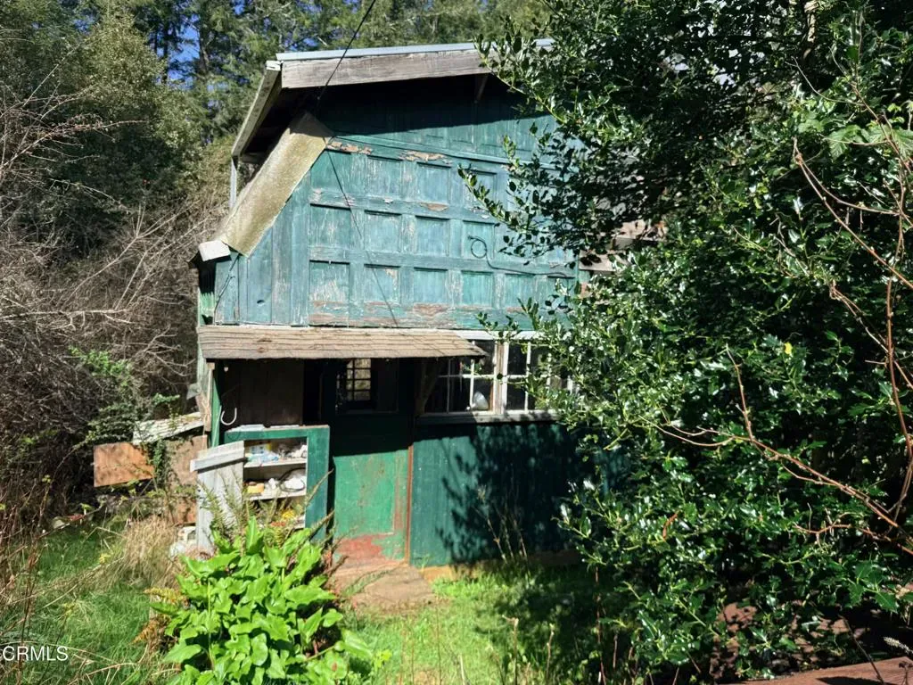 Summer of 1969 handcrafted home in built out of mostly redwood, a peaceful haven in a quiet corner on 2 acres of privacy. Open living room with high ceilings and a built in loft and wood stove. Wood walls throughout, the kitchen and dining room are connected with another wood stove. Upstairs are two bedrooms with forest views and redwood walls. A detached studio needs work, and has the potential to be a charming haven retreat with mismatched windows and a loft. Fruit trees, a gardenia tree, and camelias surround a garden area ready for digging in and planting a vegetable garden. Near to beaches, trails, a market and hiking trails.