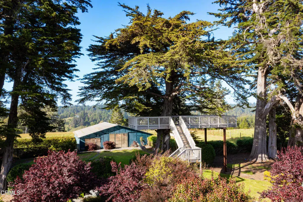 This immaculate equestrian complex and farm is positioned just above the Pacific Ocean with gently rolling meadows, green paddocks, and mature gardens. Dynamic ocean views to the south showcase the confluence of the Navarro River and the Pacific Ocean. Multiple buildings, including a stunning horse barn, a dairy barn and a greenhouse, are clustered together and bordered by charming gardens and orchards. The focal point of the developed area is the grown-up’s treehouse, suspended in a grand Coastal Cypress tree and overlooking the landscaped grounds and garden pathways. To the north, a trail leads through the forested area of the property and down to Salmon Creek. A lower meadow, situated on a bench above Salmon Creek, is private and serene, and excellent for hiking and recreation. Fenced pasture lands make up the bulk of the property. The large acreage holds great promise for further development, including the ability to build a custom residence. A permitted three-bedroom septic has already been installed and there are two existing wells. Whether you are looking to develop the property further or just utilize its current facilities, this coastal retreat is perfectly equipped for equine enthusiasts and those seeking a tranquil retreat.