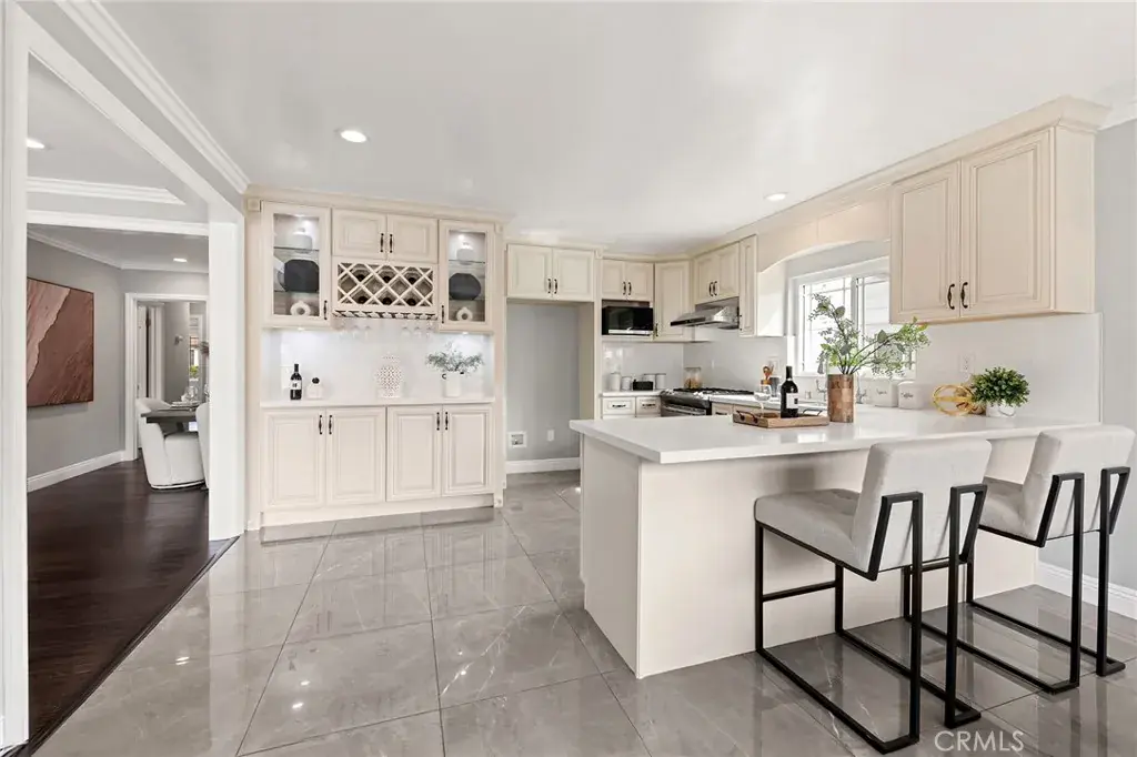 Step inside to discover a stylish contemporary interior filled with natural light and refined finishes throughout. The home features a spacious, open-concept kitchen designed for both functionality and entertaining. This wide and airy culinary space showcases a center island, sleek modern cabinetry, and elegant quartz countertops, offering ample prep space and storage. The kitchen seamlessly flows into the dining and family room, creating a warm and inviting environment perfect for gatherings.