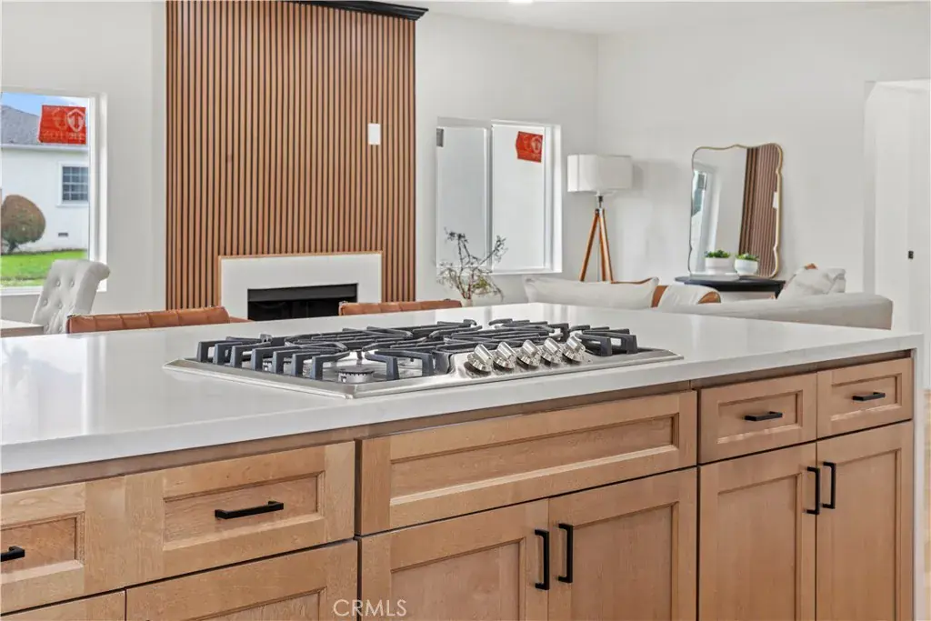 Designed with an open-concept layout, the home showcases quartz countertops, maple wood cabinetry, waterproof & scratch-resistant luxury vinyl plank flooring, a stove top, and a stunning 9-foot island—perfect for family gatherings and entertaining. A cozy chimney area adds warmth and charm to the living space.