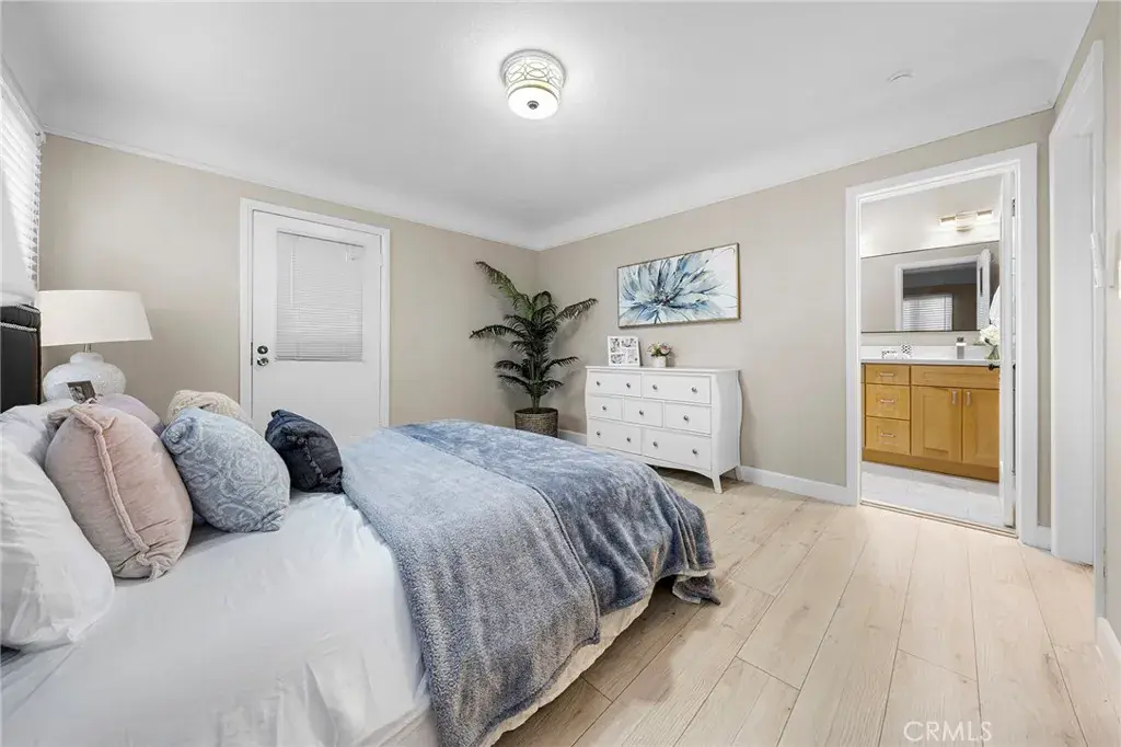 The spacious living room is filled with natural light and flows seamlessly into the formal dining room, creating an ideal setting for entertaining and gatherings. The home offers 3 bedrooms and 2 beautifully updated bathrooms. The primary bedroom enjoys direct access to the garden and features a spa-inspired en-suite bathroom with a new marble double-sink countertop, solid birch cabinetry with soft-close doors and drawers, a Jacuzzi soaking tub, and new porcelain tile flooring.