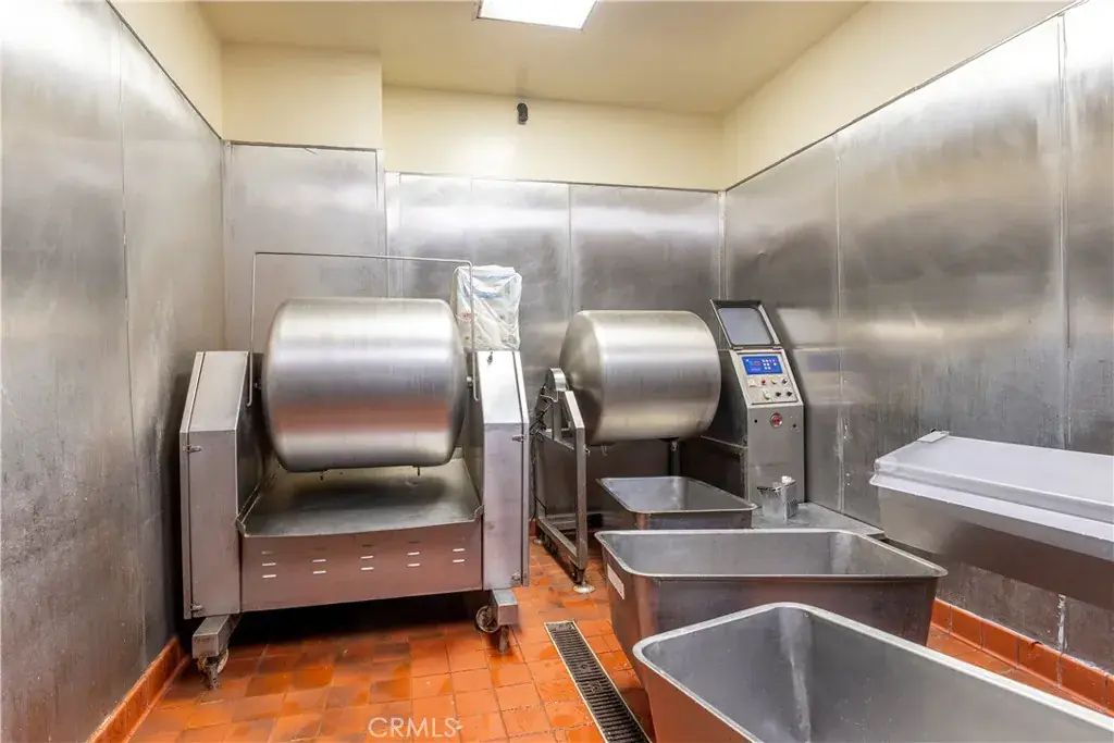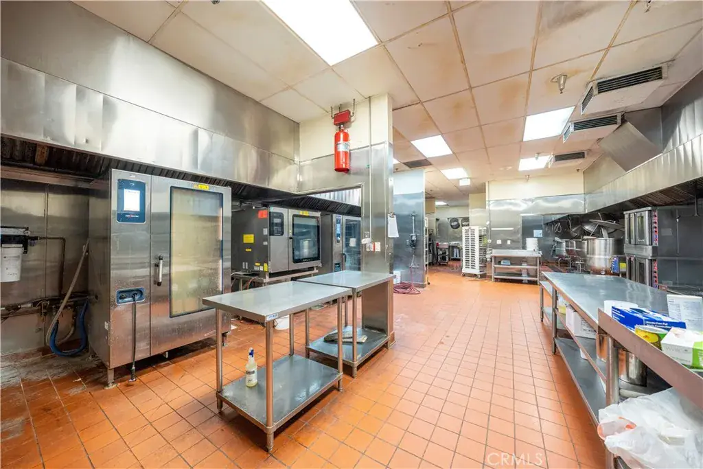 The property features a large, professionally equipped commercial kitchen with extensive stainless-steel prep areas, ventilation hoods, walk-in refrigeration/freezer capacity, and multiple production rooms-allowing for high-volume food preparation and operational efficiency. This infrastructure provides a significant cost and time advantage for operations seeking a turnkey or near-turnkey solution.