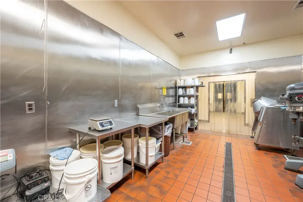 Complementing the kitchen is a functional warehouse component with two loading docks, enabling efficient inbound and outbound logistics, deliveries, and distribution. Palm Avenue is notably wide, providing excellent access for box trucks and delivery vehicles and allowing for easy turning, staging, and maneuvering in and out of the property-an increasingly valuable feature for industrial and food-service users.