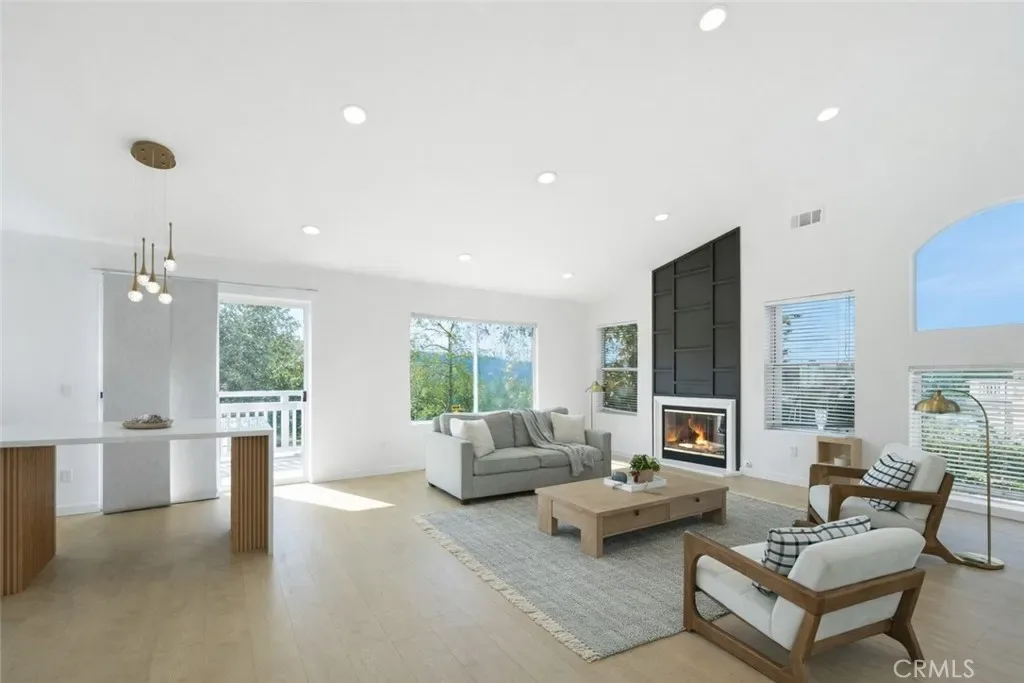 From the moment you walk in, you get that “WOW” feeling—soaring ceilings, tons of natural light, and a wide-open layout that just feels amazing. The living space is anchored by a sleek modern fireplace wall and huge windows that bring the outside in.