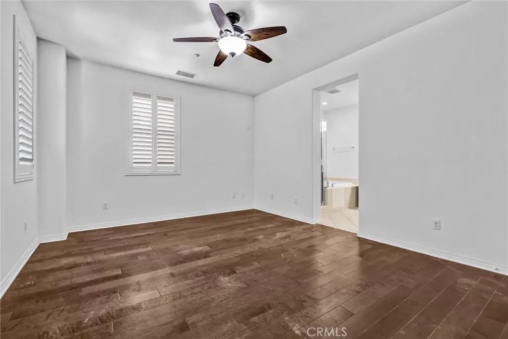 Inside, you’ll find an inviting open layout featuring soaring ceilings, rich hardwood floors, and custom plantation shutters throughout. The chef’s kitchen boasts sleek granite surfaces, stainless appliances, and a center island perfect for preparing meals or gathering with friends. Designer lighting, smooth bullnose wall edges, and refined finishes create a warm and sophisticated ambiance.