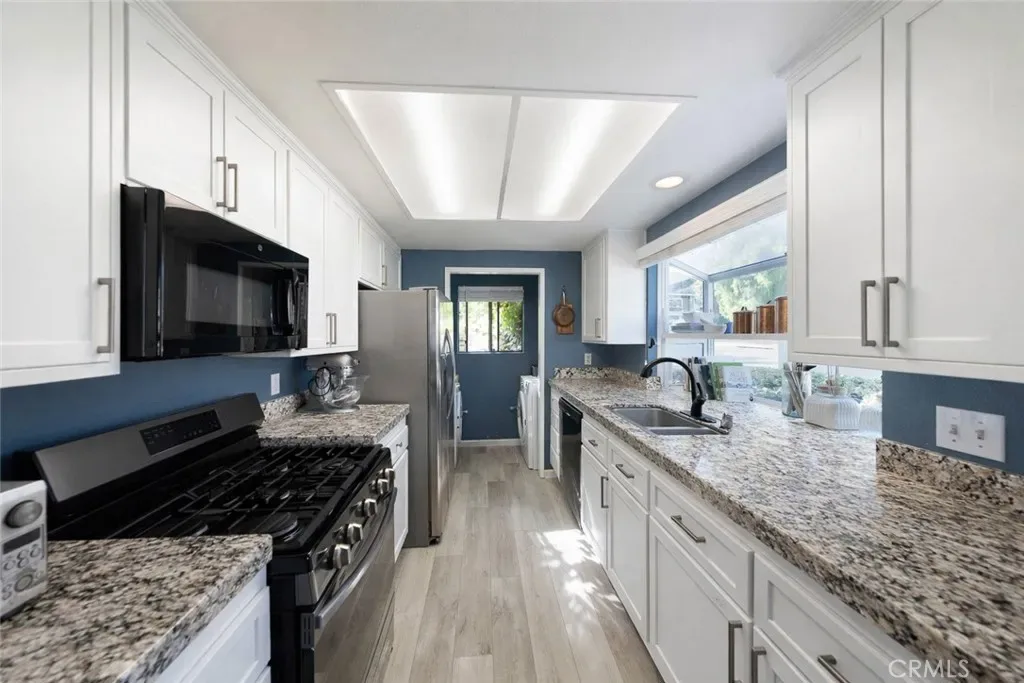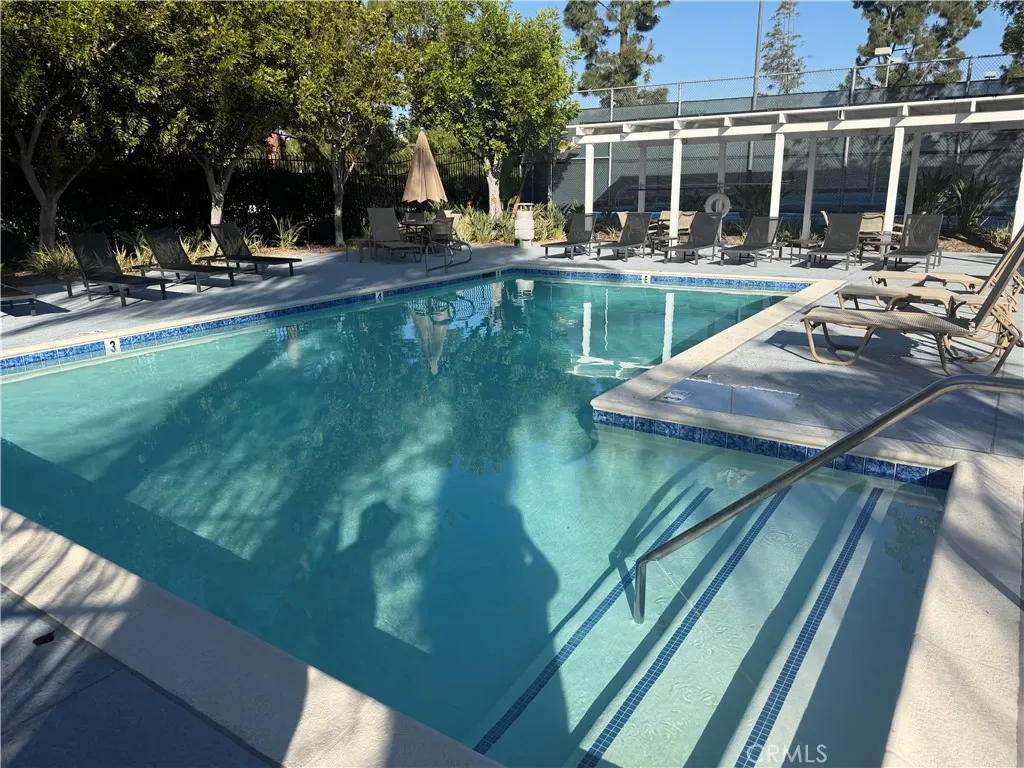 Beautifully Updated 2-Bedroom Lower-Level Condo. This inviting condo offers a bright, comfortable living space with updated flooring and large windows that fill the home with natural light. The spacious primary bedroom features a private vanity area, while the second bedroom is generously sized—perfect for guests, an office, or a growing household. The bathroom has been tastefully updated, and the home includes recently upgraded appliances for added convenience. Relax in the cozy living room with its charming fireplace, or step outside to the expansive back patio, complete with fruit trees—a rare and peaceful outdoor retreat. The community offers fantastic amenities, including a pool and spa, tennis courts, and walking paths. You’ll also enjoy close proximity to schools, parks, shopping, dining, and easy access to the 73 Toll Road