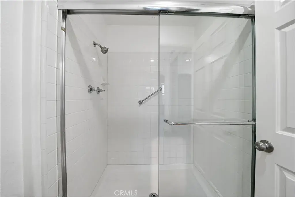 Both bathrooms have been thoughtfully updated. The hall bath features a new quartz countertop, recessed lighting, a large mirror, and updated fixtures. The spacious primary suite offers recessed lighting, a generous walk-in closet, and an updated vanity with dual sinks, quartz countertop, modern fixtures, a large mirror, and a separate water closet for added privacy.