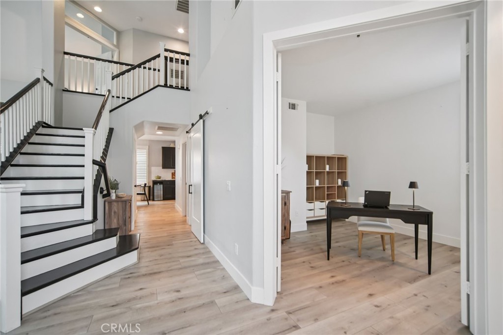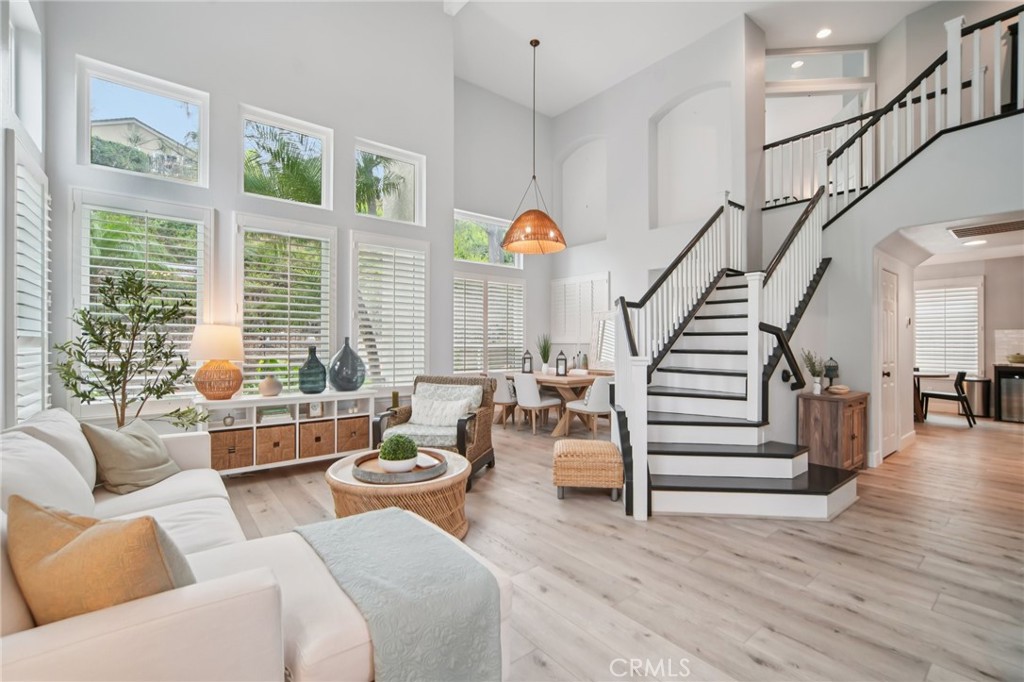 Corner lot on a cul-de-sac in one of Aliso Viejo’s most sought-after neighborhoods, 2 Blackbird Lane is a refined, resort-style residence that seamlessly blends timeless design with modern luxury. Thoughtfully upgraded throughout, this exceptional home offers 4 bedrooms and 3 bathrooms, including a main-level bedroom and full bath, ideal for guests, multigenerational living, or a home office. The chef’s kitchen is a true showpiece, featuring quartz countertops, designer tile backsplash, new premium appliances, and a built-in wine refrigerator, all opening gracefully to the inviting family room. Laminate flooring throughout and a custom wood staircase elevate the home’s warmth and architectural appeal. The primary suite is a private sanctuary, highlighted by dual quartz vanities, a spa-inspired luxe shower, an oversized soaking tub, walk-in closet, and a private water closet, creating a true retreat experience. All secondary bathrooms are equally refined with quartz vanities and upgraded finishes. Recent enhancements include new dual-pane windows for comfort and energy efficiency, along with a sleek epoxy-finished garage. Step outside to your own backyard oasis, designed for year-round enjoyment. The outdoor space features a resort-style pool and spa and a built-in BBQ, perfect for hosting unforgettable gatherings or relaxing in total privacy. Ideally located near award-winning schools, scenic parks and trails, upscale shopping and dining, and convenient freeway access, 2 Blackbird Lane delivers an elevated Southern California lifestyle where luxury, comfort, and location converge.