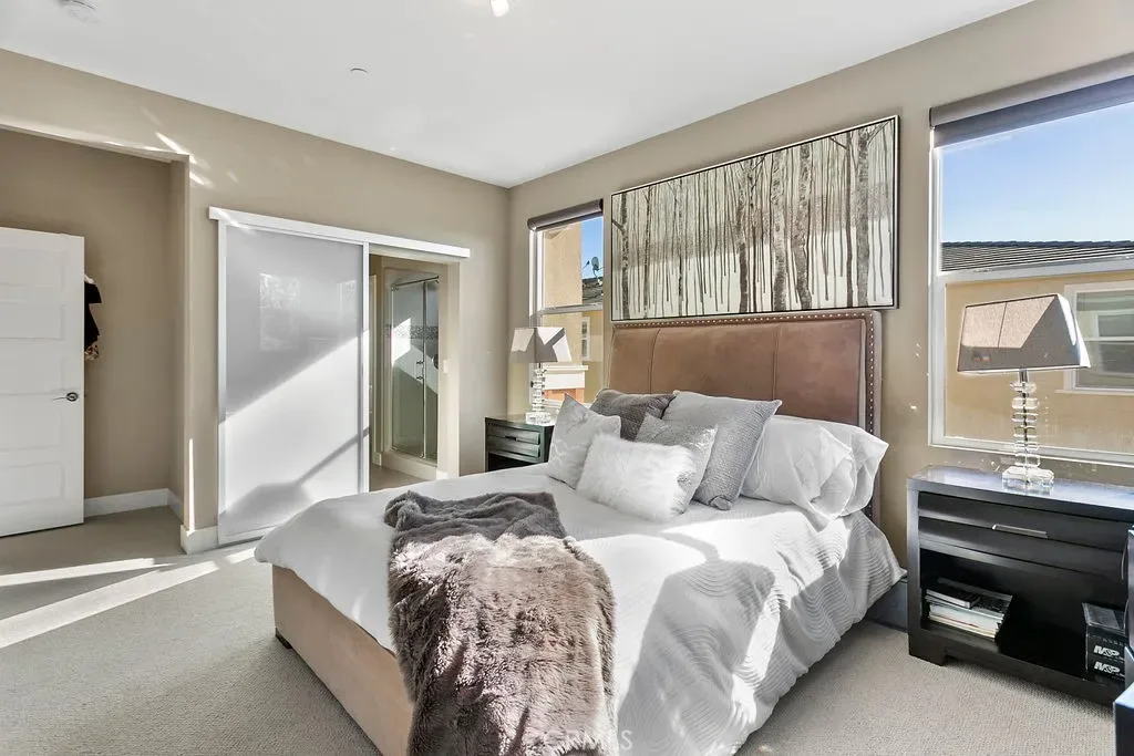 Immaculate townhouse with open floor plan, highly upgraded! This modern condo offers DUAL MASTER BEDROOMS, 2 Bedrooms, 2.5 Bathrooms, 2 Car Attached Garage! Premium private lot location puts the home directly across a greenbelt. The home features, gorgeous entertainer kitchen with spacious balcony, recessed lighting throughout. Luxury countertops, luxury flooring, high-end stainless steel appliances. Upgrades include rich, crown molding, featuring sliding glass doors, and much more. This home offers a covered balcony, perfect for evening dinners or your morning coffee. Attached two car garage with direct access, indoor laundry room on 3rd story with washer & dryer. Close to the Grand Park & Aliso Viejo town center. Full access to Vantis Club with a private gym, pool & spa with cabanas, outdoor kitchen, fireplaces. MUST SEE IT! Sorry, no pets.