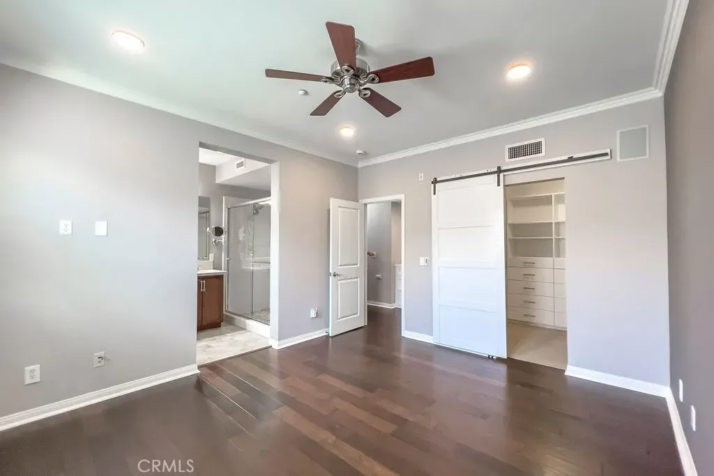 Available May 5th, this unique Aliso Viejo townhome stands out for its open floor plan and impressive 25-foot ceilings that frame views of the mountains and city lights. The layout is built for hosting, with a seamless flow between the family room, dining area, and a kitchen featuring quartz countertops and stainless-steel appliances. High-end custom touches are found throughout, including hardwood flooring, crown molding, bespoke lighting, and specialized additions like a built-in wine bar and a balcony bar. Both bedrooms are well-sized, featuring walk-in closet organizers for maximum storage. Practicalities include a two-car tandem garage with extra storage space and access to The Club’s resort-style gym, pool, cabanas, and outdoor fireplaces. The location is highly walkable, sitting just a short distance from the shopping, dining, and theaters at Aliso Viejo Town Center. 2-Car Tandem Garage-parking only; no overnight guest-spot access for residents.