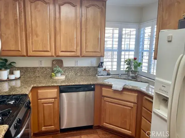 This charming end-unit residence offers 2 bedrooms and 2 bathrooms with a spacious, open, and light-filled floor plan. Upon entry, you’re welcomed by beautiful new laminate wood flooring and fresh interior paint throughout. The inviting living room features a cozy fireplace and flows seamlessly into the kitchen, which is enhanced by granite countertops and an elegant backsplash. The generous primary suite provides a comfortable retreat with recessed lighting and mirrored wardrobe doors. Step outside to a private patio perfect for morning coffee or evening relaxation and entertaining. With attractive curb appeal and a peaceful setting, this home is conveniently located near shopping, parks, and top-rated schools. Residents will also enjoy close proximity to walking trails, a pool, tennis courts, a fitness center, and award-winning schools.