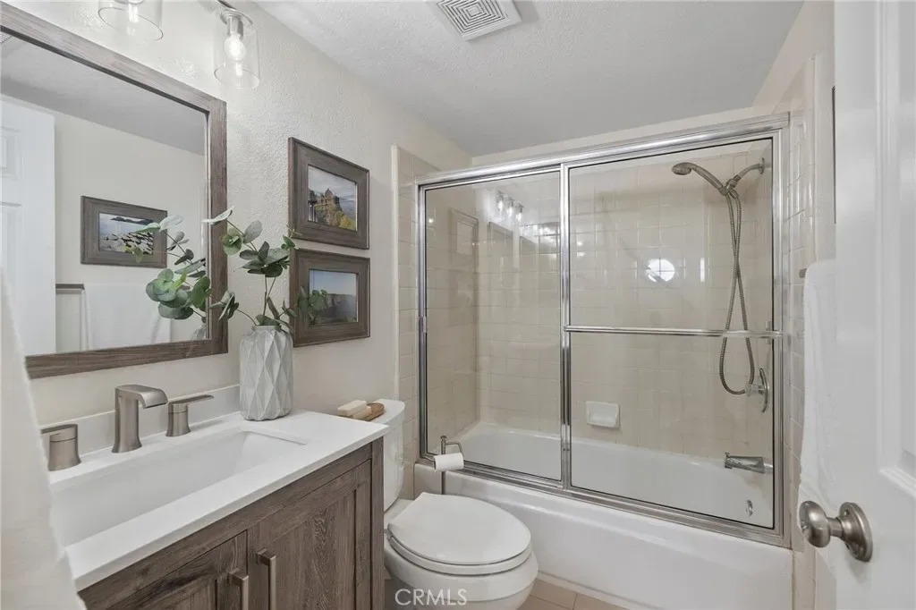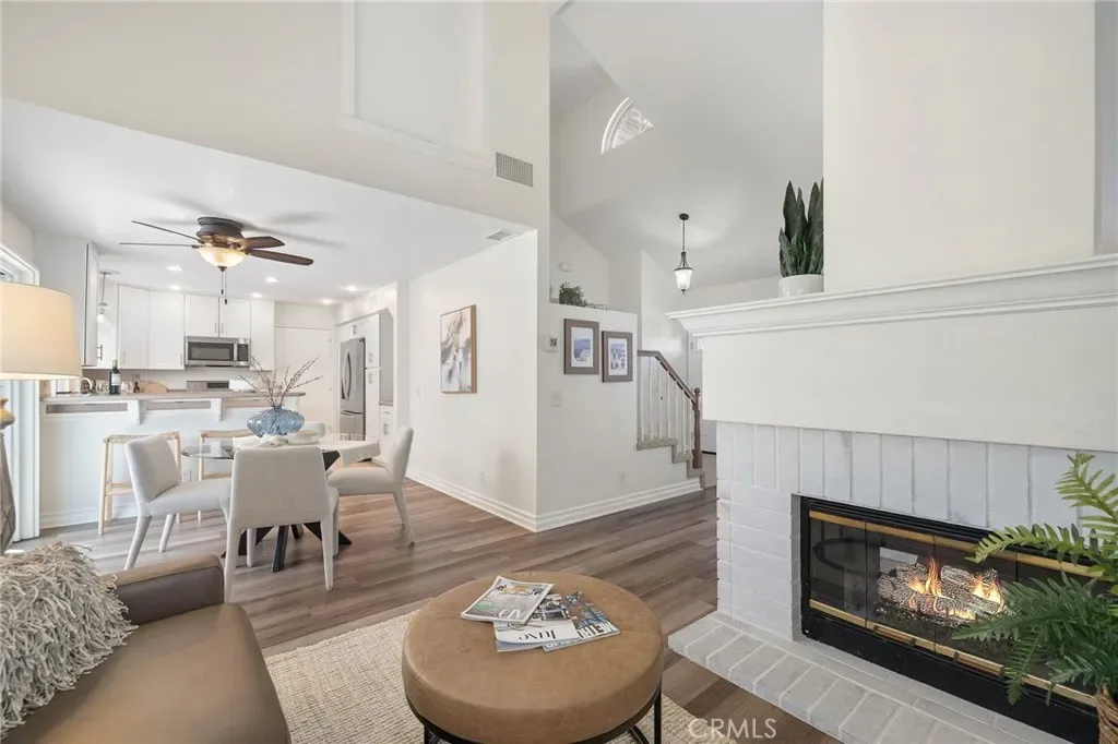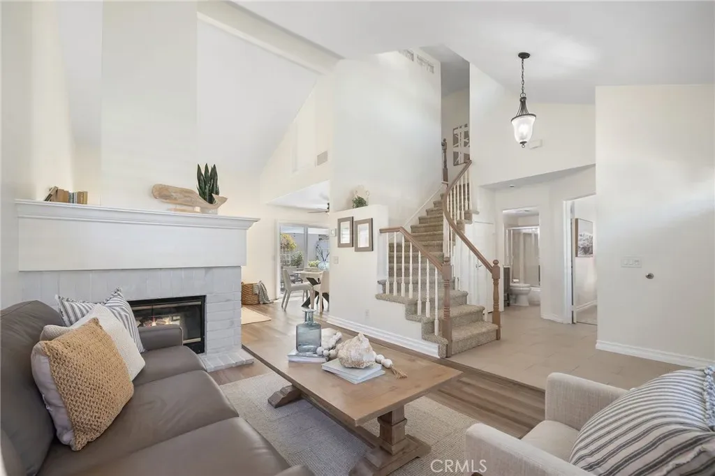 Beautiful 4 bedroom 3 bath home in the desirable Laguna Audubon community, located within the highly sought after Laguna Beach School District. Thoughtful floor plan features 3 bedrooms upstairs and 1 BEDROOM DOWNSTAIRS. Enjoy a cozy double sided fireplace connecting the living room and family room with wood vinyl flooring throughout the main living areas. The open concept kitchen offers white shaker cabinetry, granite countertops and flows seamlessly into the family room. Other notable features include full house repipe with PEX, new double fiberglass doors, LVP flooring and new tile in the entry, kitchen and downstairs bedroom and bath. Ideally situated near Laguna Beach, scenic hiking and biking trails, top rated schools, shopping, and convenient freeway access.