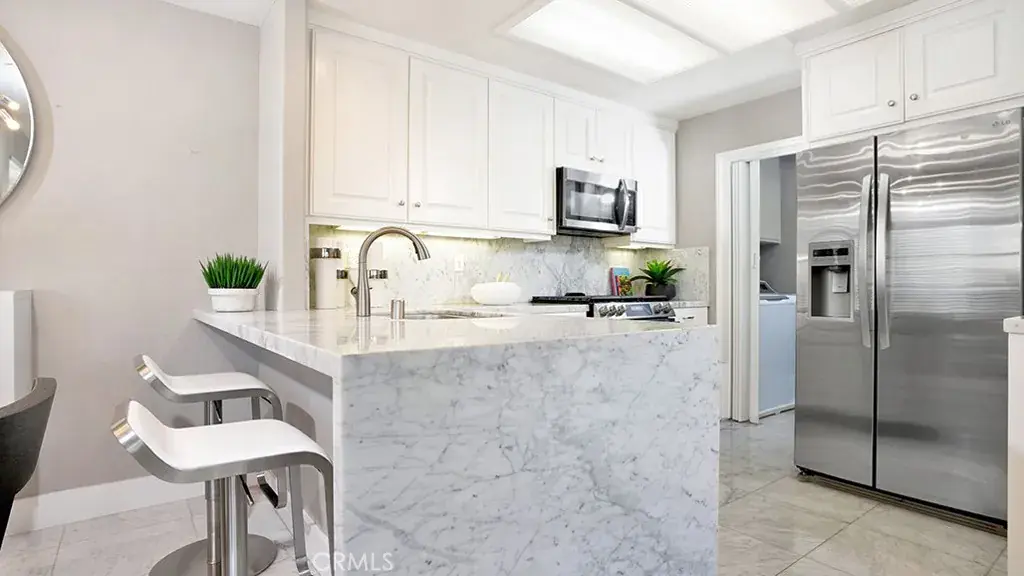 Uniquely positioned as the only residence in the community with two side-by-side, one-car garages, the property offers a truly rare and valuable feature. Tucked into a super-quiet interior tract, the unit is considered one of the best locations in the community, just steps from the pool, spa, and nearby park.