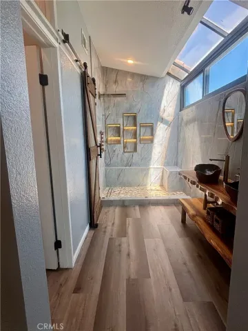 A custom glass and iron entry door welcomes you into a dramatic two-story foyer featuring a designer chandelier and elegant LifeProof luxury vinyl plank flooring throughout. The open-concept great room seamlessly combines the living and dining areas, highlighted by a striking ledger-stacked stone fireplace. The chef’s kitchen is truly breathtaking, thoughtfully designed with high-end finishes and premium appliances including a Thermador 4-burner professional range with convection oven, smart refrigerator, and dishwasher. A hammered copper farmhouse sink with upgraded faucet, abundant cabinetry, and generous counter space make this kitchen as functional as it is beautiful. A casual dining area with built-in sideboard and cabinets complete this family kitchen! A charming Dutch door opens to a low-maintenance wraparound backyard featuring multiple fruit trees—perfect for indoor-outdoor living. The main level also includes a convenient powder room and direct access to a two-car garage with epoxy-coated flooring, complete with a high-end smart washer and dryer. Upstairs, you’ll find 4 spacious bedrooms and 2 fully upgraded bathrooms featuring smart toilets. The expansive primary suite with double doors offers a true retreat, with a spa-inspired bathroom showcasing a walk in shower with multiple shower features, including a luxurious rain shower. Custom decorator vanity with custom mirrors and a rolling barn door that opens to a walk in closet with built-in’s. Additional highlights include brand new energy-efficient windows with sun protection, a built-in Nest system, keyless entry, three exterior security cameras, 30 solar panels and two Powerwalls with a Tesla charger. Save $$$ on your electric usage! This turnkey home offers an exceptional leasing opportunity with every modern upgrade—ready for immediate enjoyment. Park with playground is close by, highly rated Laguna Beach unified school district, close to Laguna Beach with world famous beaches and resorts, entertainment, restaurants, art galleries and shopping.
