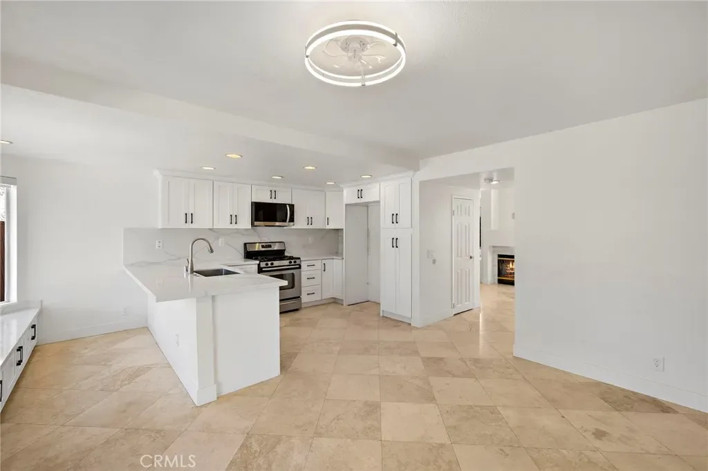 Welcome to this sophisticated residence in the heart of Laguna Audubon, where coastal style meets modern convenience. The main level greets you with elegant travertine flooringand an inviting living room centered around a cozy fireplace, perfect for unwinding. The home transitions seamlessly into a stunning, newly renovated kitchen featuring crisp white cabinetry and sleek quartz countertops, offering a bright and functional space for the home chef. A thoughtfully placed powder room on this floor adds an extra layer of convenience for guests and daily living. Moving upstairs, you’ll find durable vinyl flooring that leads to a versatile loft and three spacious bedrooms. The primary bedroom serves as a private sanctuary, boasting a luxurious travertine bath and an expansive walk-in closet. The two secondary bedrooms are cleverly designed with a shared Jack and Jill bathroom, providing both privacy and ease of access. The outdoor space is a tranquil, low-maintenance retreat featuring a covered patio that provides the perfect amount of shade for al fresco dining or morning coffee. There is a park in the community with a playground. Perfectly situated for an active lifestyle, this home is close to Laguna Beach and zoned for the highly acclaimed Laguna Beach school district and offers quick, effortless access to travel corridors putting the best of Orange County right at your doorstep.