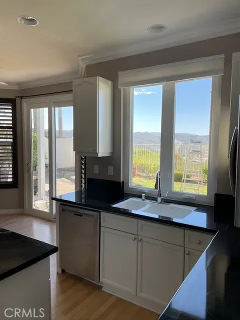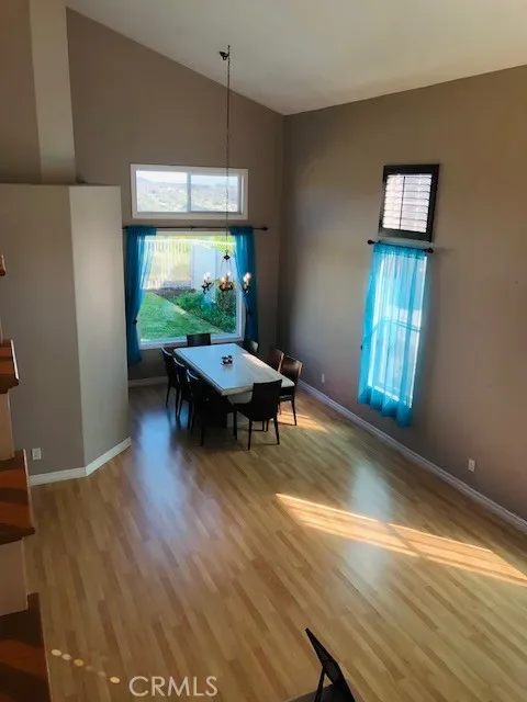 Spectacular mountain, sunset and city light views abound from this 3 bedroom, 2.5 bath executive single family home in Aliso Viejo’s Vista Ridge community. Private location backs to vast open space with no neighbors behind. Numerous interior upgrades include, new windows, refaced kitchen cabinets, maple laminate flooring, kitchen w/center island, granite countertops, stainless appliances, window shutters, upgraded baseboards–this is not your standard “rental” property. Open floor plan features a combination living/dining room with vaulted ceilings while the kitchen w/breakfast nook is adjacent to the family room with fireplace. Master bedroom offers incredible views from the private deck; spacious master bath features dual sink vanity & separate tub/shower. All bedrooms are upstairs. Private, spacious rear yard offers a patio and plenty of grass (landscape maintenance is included). Attached 2 car garage with full driveway. OWNER WON’T ENTERTAIN PETS…