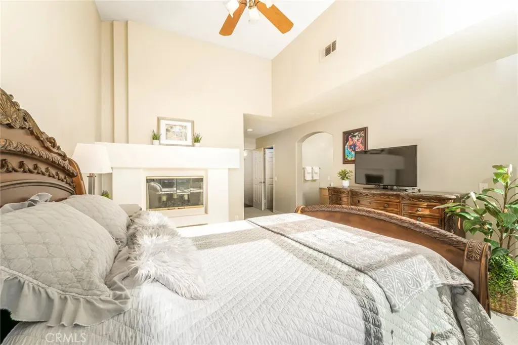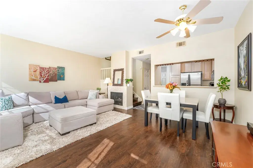 Model perfect & panoramic city lights views! Awesome & open floor plan offering a large living room with large windows & stack-stone surround fireplace and dining room area with ceiling fan light fixture. Gourmet kitchen opens up to the living area and features quartz countertops, upgraded stainless steel appliances, recessed lighting, custom wine glass racks and walk-in pantry with added shelving. Upgrades include laminate wood floors & custom baseboards, six-panel doors, two tone interior paint, mirrored closet doors & more. Wood-accented staircase leads to a large landing with linen closet and dual doors unveiling an over-sized master suite offering raised fireplace, cathedral ceilings with ceiling fan light fixture, large walk-in closet plus 2nd closet & French door access to private balcony with panoramic hills & city lights views. 2-car attached garage with upgraded sectional garage door & overhead storage, large front patio area. The residence is situated within a gated community. Attention has been paid to items such as, new water heater, newer carpet, flooring and paint. When it’s time to step out, the community offers an array of amenities to enjoy, including a pool, spa, barbecue, play area, sport court with tennis, pickleball, basketball, and meandering walking paths. Located with incredibly convenient access to the 73 toll road, this home is just a short drive from picturesque parks, scenic biking trails, and the soothing sands of nearby beaches. Shopping enthusiasts will delight in the proximity to the new 99 Ranch, Trader Joe’s, lots of Great Restaurants, entertainment, Tesla charging stations, and much more.