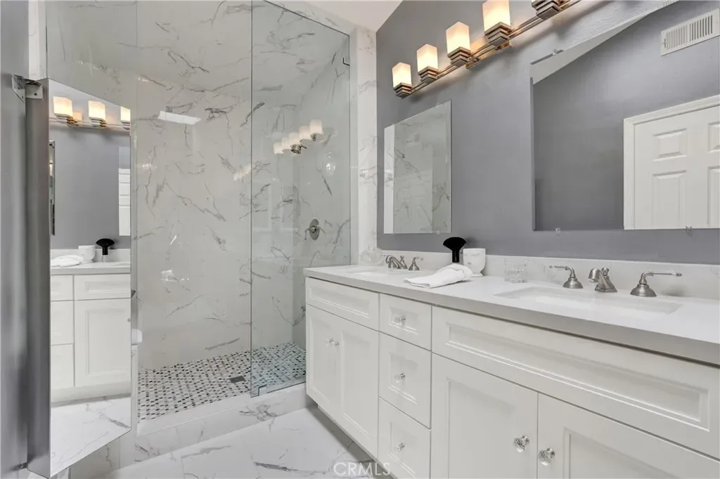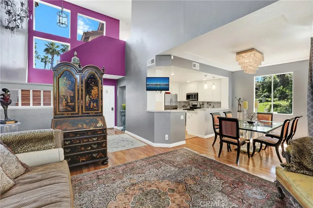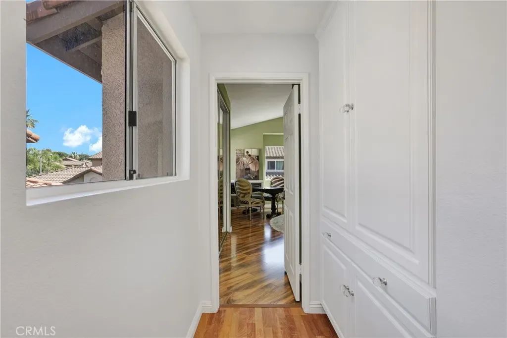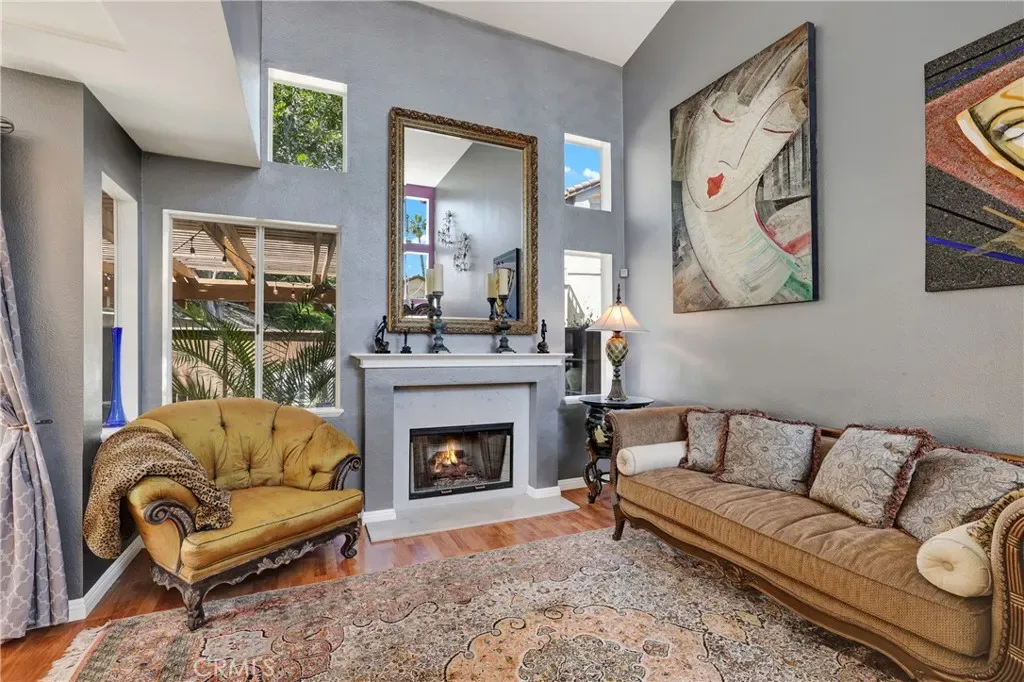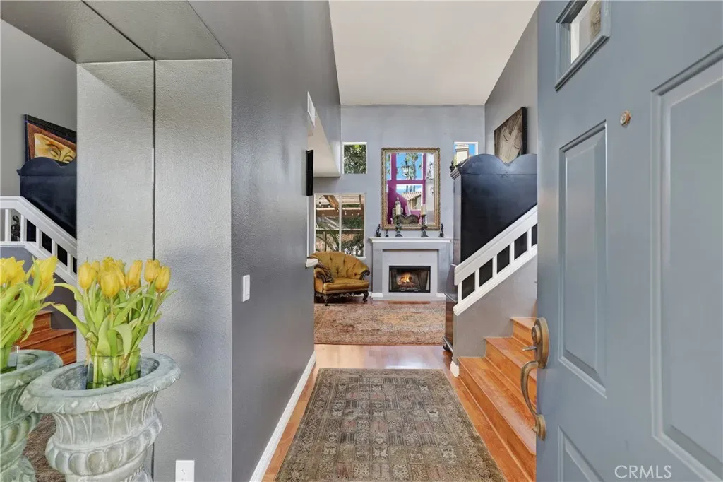 Nestled within the Windwards enclave of Aliso Viejo, 69 Conch Reef presents a rare opportunity to own a beautifully appointed residence. This desirable two-story corner home shares only one common wall and showcases thoughtful design, where high-quality materials and refined finishes create an atmosphere of modern European-inspired elegance. Upon entry, soaring ceilings and an abundance of windows fill the home with natural light, framing picturesque views of trees and colorful skies. The living room exudes sophistication, centered around a gas fireplace with a marble surround and dramatic vertical space. The kitchen is equally impressive, featuring sleek marble countertops, upgraded stainless steel appliances, and custom storage tailored for both function and style. Upstairs, the spacious primary suite offers carefully integrated built-ins for organized living. The ensuite bath is a true retreat, complete with dual floor-to-ceiling mirrored closets, marble finishes, and a beautifully remodeled walk-in shower. Located down the hall, the private secondary suite is enhanced with thoughtfully designed built-ins—including a discreetly integrated refrigerator—making it ideal as a guest room, office, or flexible living space. Blending contemporary European design with versatility, this exceptional home caters to a variety of lifestyles. Ideally situated in the sought-after community of Aliso Viejo, residents enjoy access to top-rated schools and close proximity to Laguna Beach, Newport Beach, John Wayne Airport, scenic wilderness parks, and a wide array of amenities.