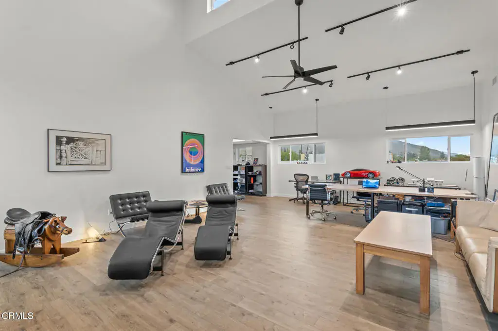 Welcome to this charming home, perfectly positioned to face north toward the San Gabriel Mountains. Originally built in 1951, this bungalow was expanded about 5 years ago and now offers approximately 3,211 sq ft. The MAIN FLOOR features 2,788 sq ft, while the LOWER FLOOR GUEST STUDIO adds an additional 423 sq ft of living space with its own entrance.**MAIN FLOOR–**The home showcases a expansive Great Room with 22-ft ceilings and oversized windows capturing both sunrise and sunset. Plumbing has been installed along the east wall for a potential secondary kitchen. The expansion added 2 bedrooms and 2 bathrooms, including a spacious primary suite with a private south-facing balcony.**OUTDOOR PATIO–**Approximately 210 sq ft on the main floor, perfect for morning coffee or evening wine with mountain views. A staircase leads downstairs.**LOWER FLOOR–**The ground-level studio offers 423 sq ft with 1 bedroom, a living area with kitchen, and a bathroom, ideal for extended family, guests, or rental income.**CAR ENTHUSIAST’S DREAM–**A 6-car garage totaling 1,372 sq ft is complemented by a workshop garage, plus a carport located between the garages and the studio for extra parking. ***OTHER HIGHLIGHTS –*** 1) The garage was engineered to rigorous seismic standards. The concrete floor is thicker than minimum ratings and and the structure above consists of industrial steel utilizing a 12′ H-beam. Surrounding the 5 garage openings are steel/plywood shear panels. This structure could support multiple stories above.2) The upper studio/apartment is designed for potential separation from the original bungalow as a separate living space. The east wall is prepped for a kitchen, including water, drain, and gas appliance service. There are two exterior entrances (E. side and W. side).3) New A/C in the original bungalow, matching the new system in the studio addition.